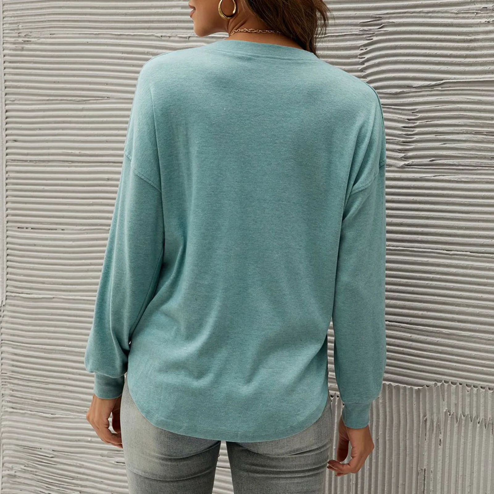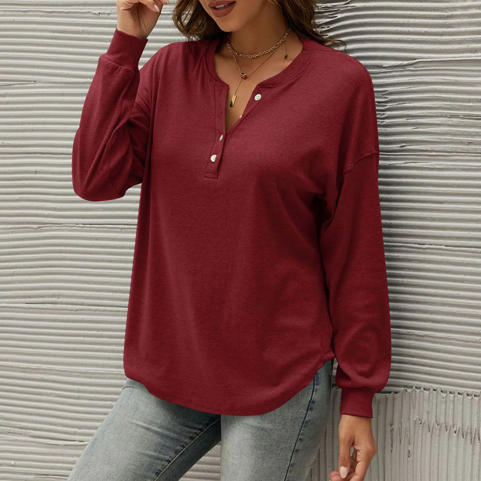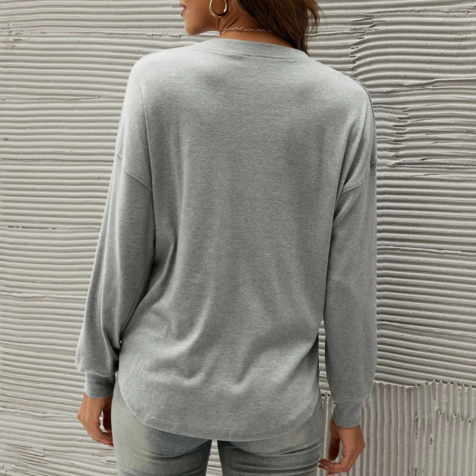 Women Brushed Long Sleeve T-Shirt Sexy V Neck Button Down Oversize Sweatshirt Female Casual Loose Warm Tunic Tops Mujer