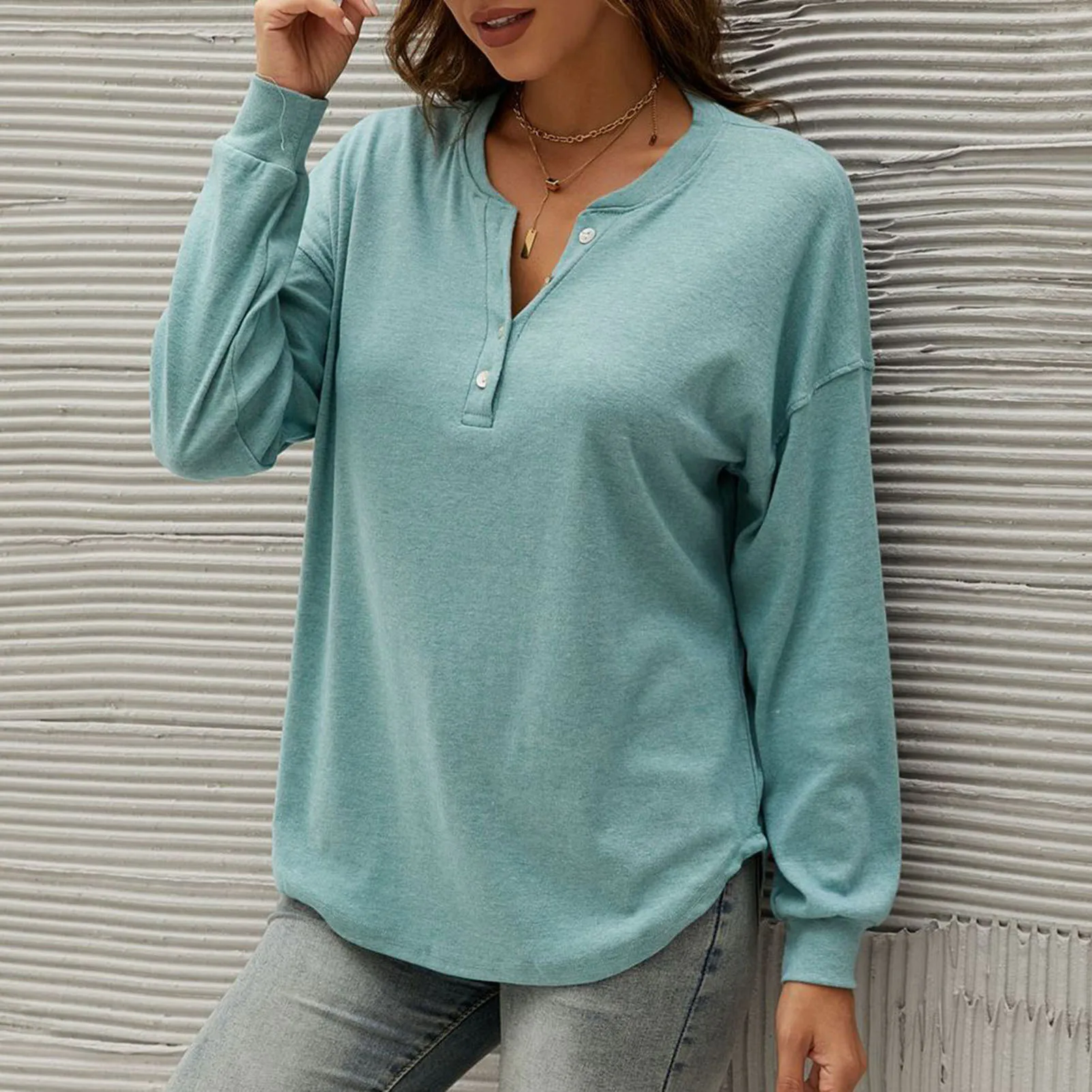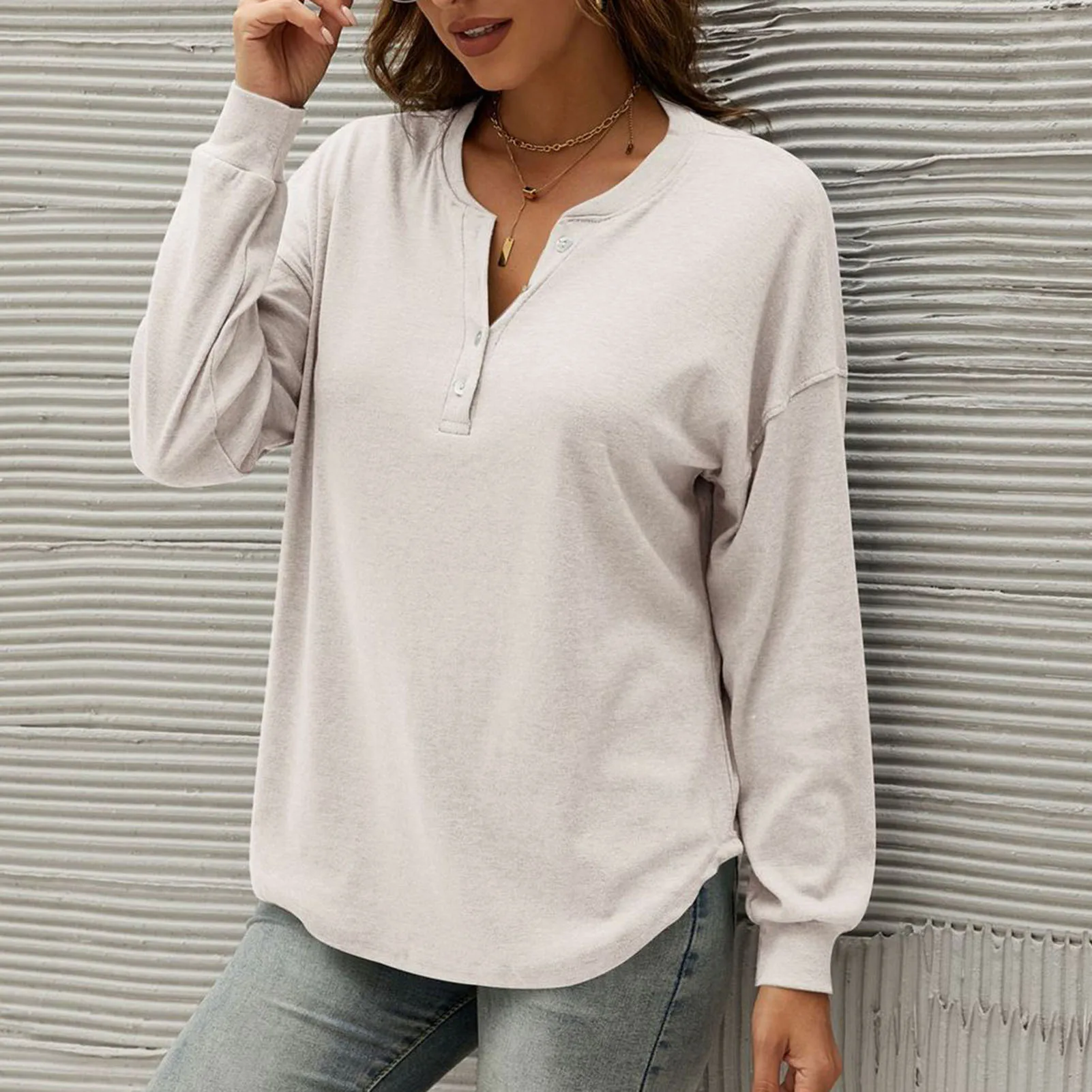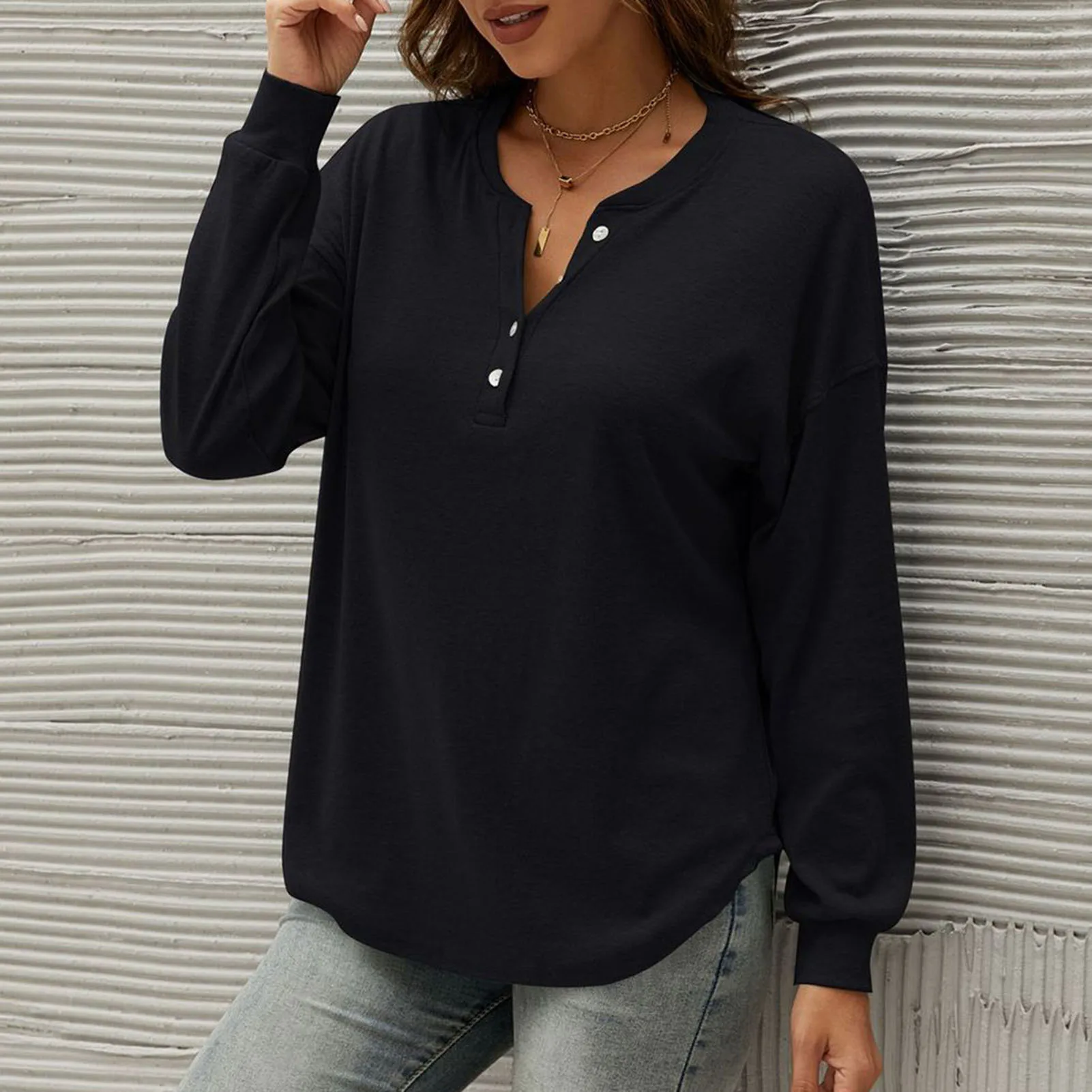 Women Brushed Long Sleeve T-Shirt Sexy V Neck Button Down Oversize Sweatshirt Female Casual Loose Warm Tunic Tops Mujer