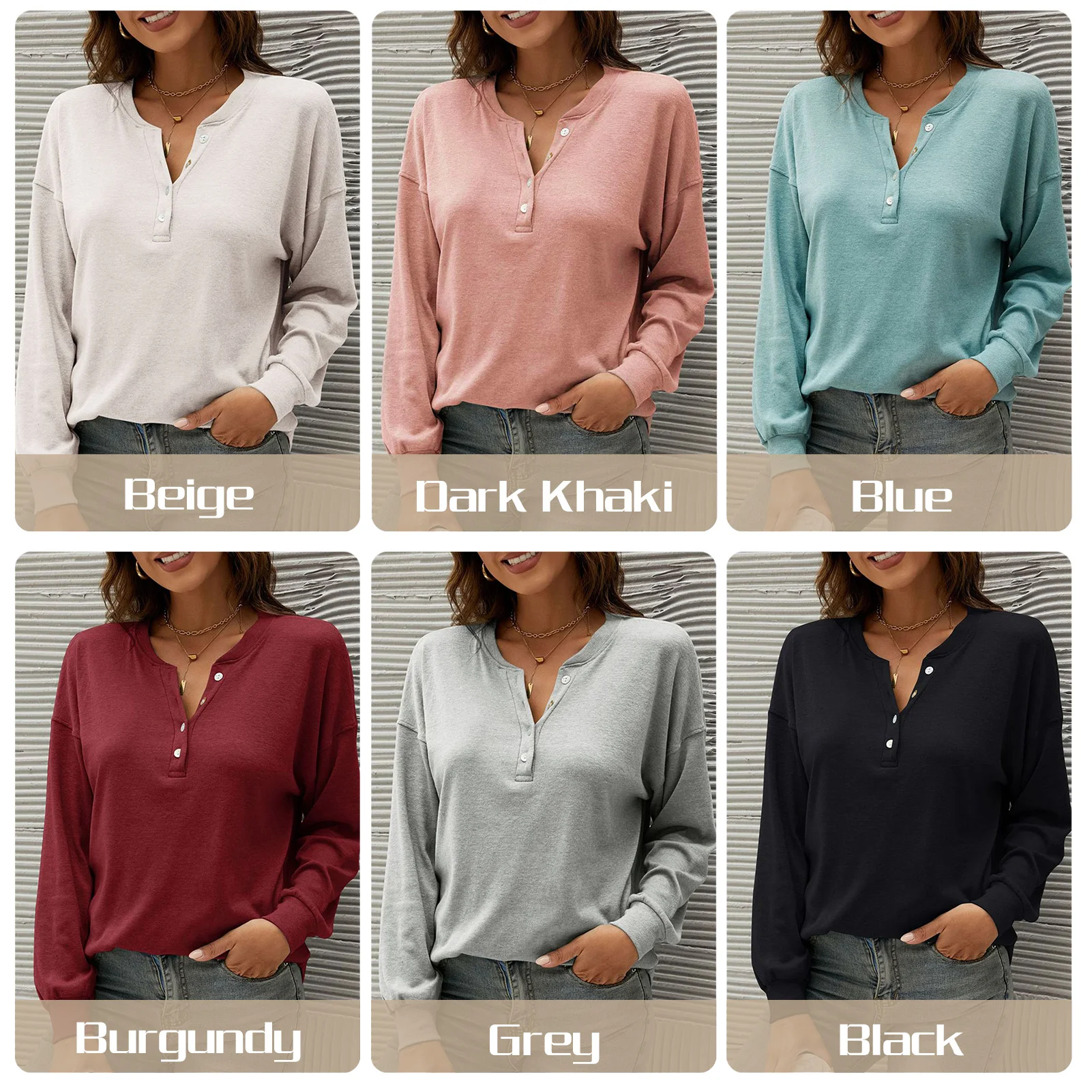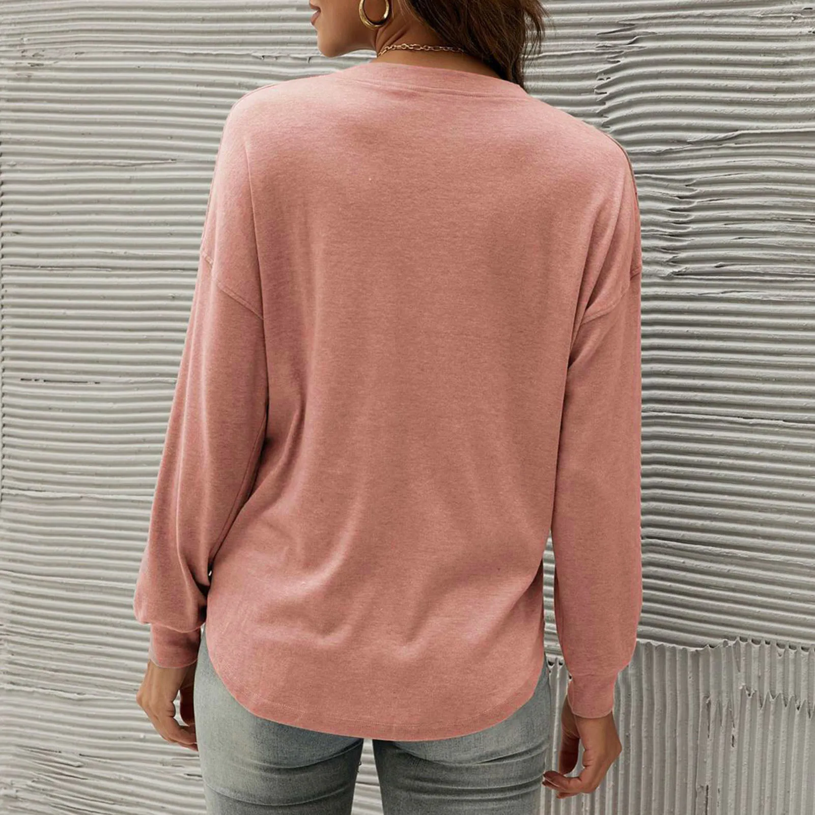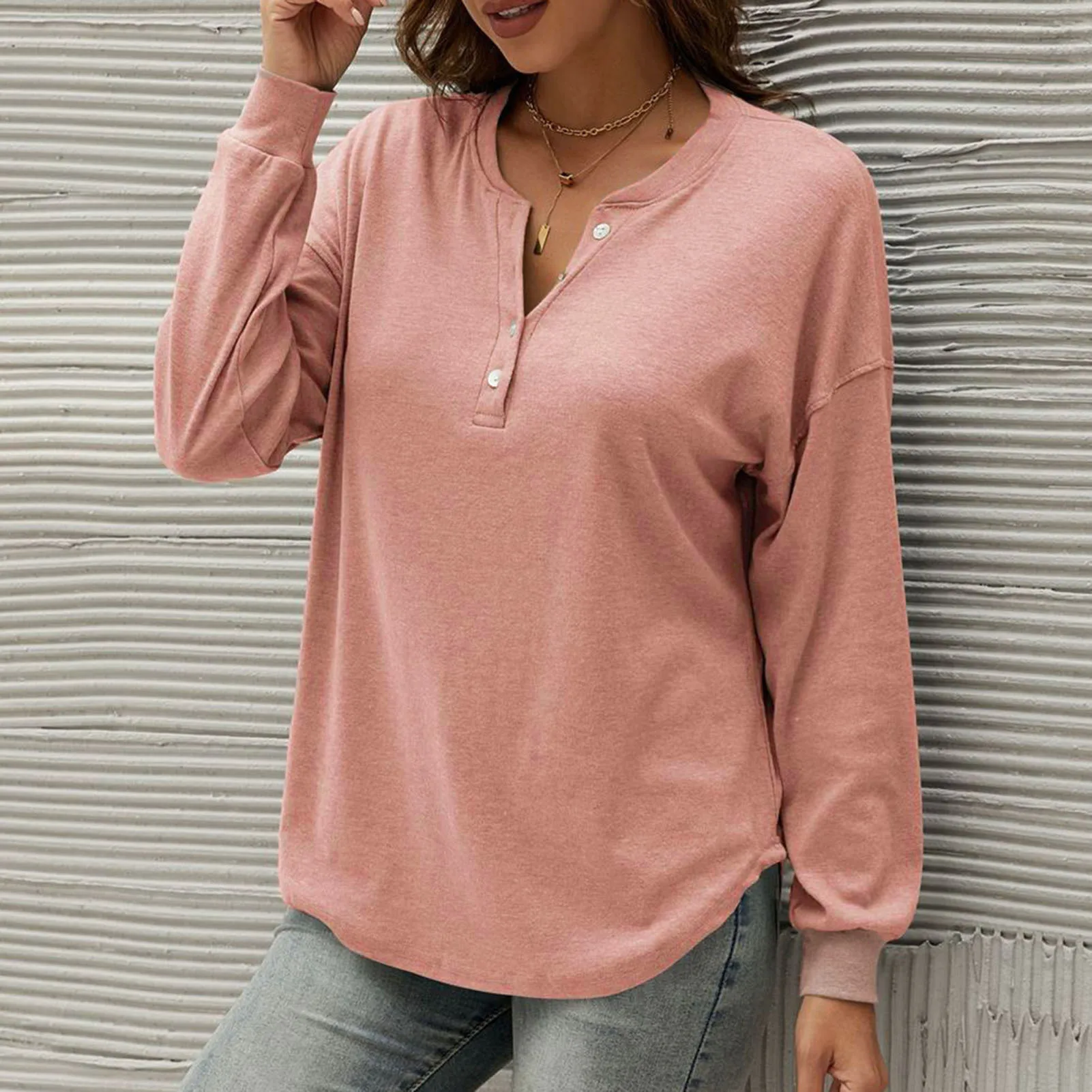 Women Brushed Long Sleeve T-Shirt Sexy V Neck  Button Down Oversize Sweatshirt Female Casual Loose Warm Tunic Tops Mujer