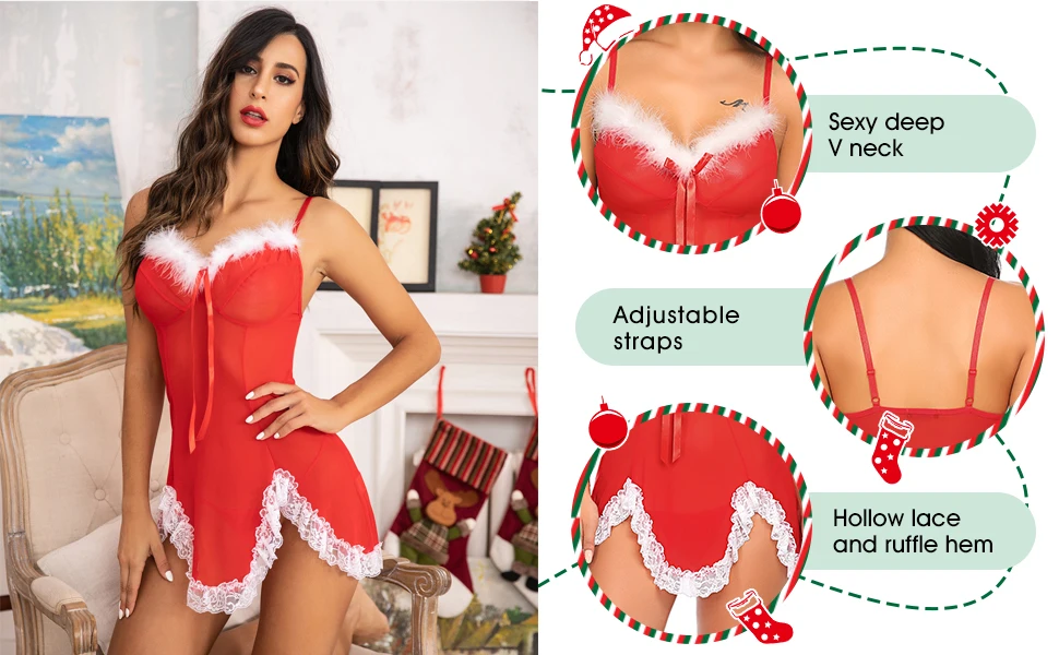 Suit for: Christmas, Wedding night, lingerie Party,sleepwear,Valentine's Day.etc