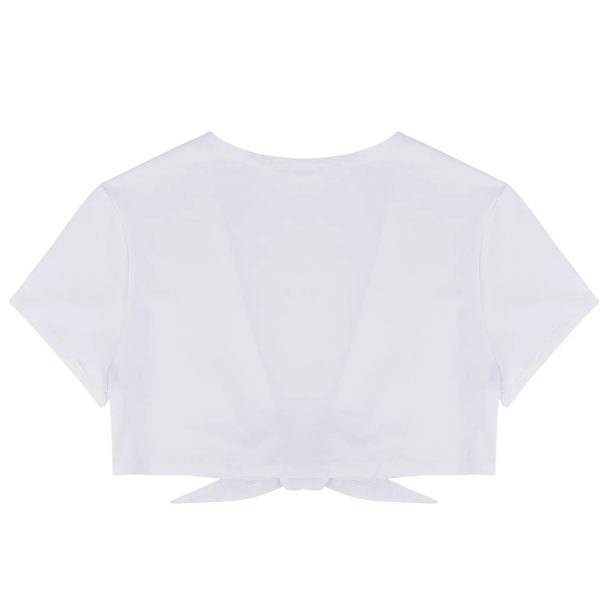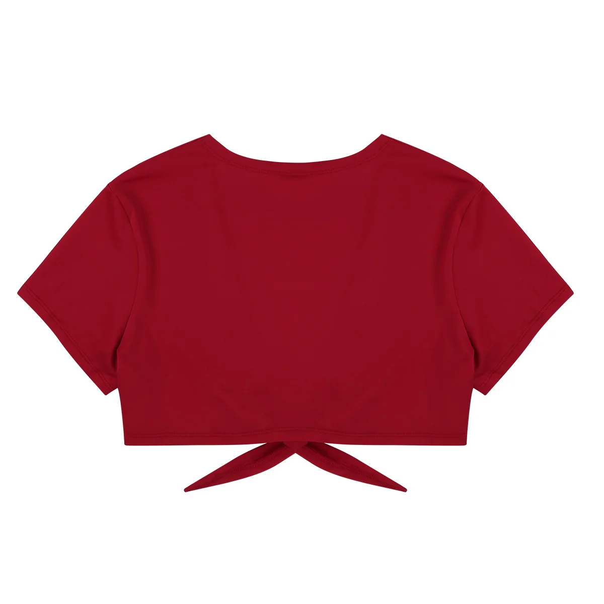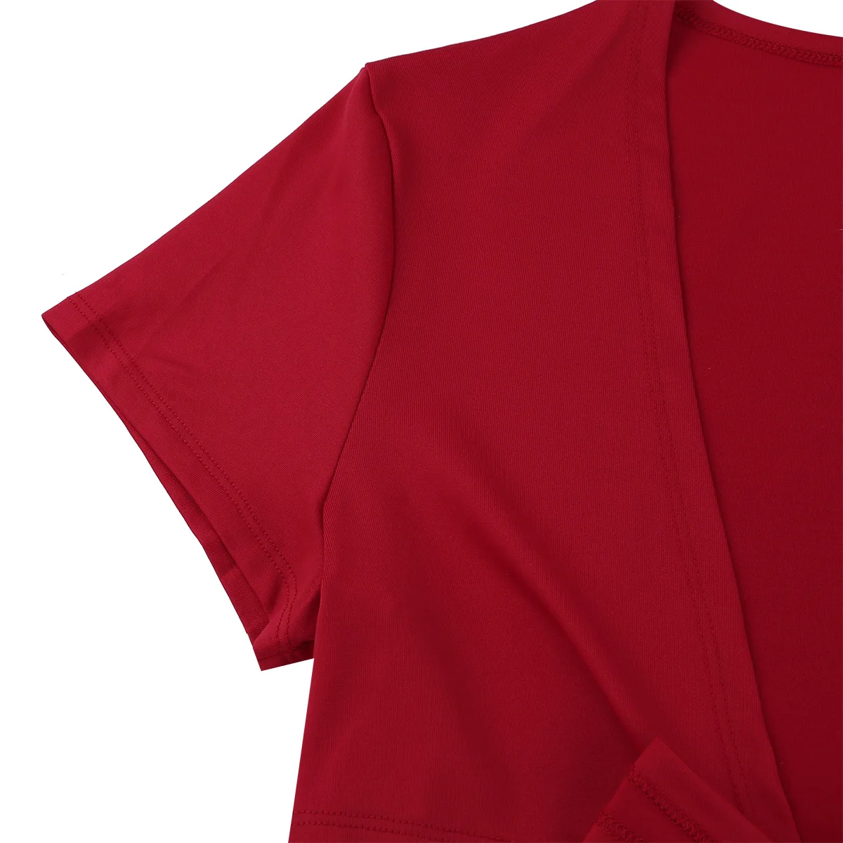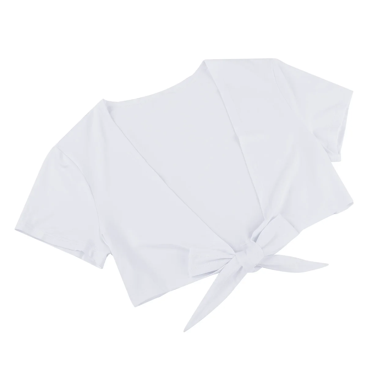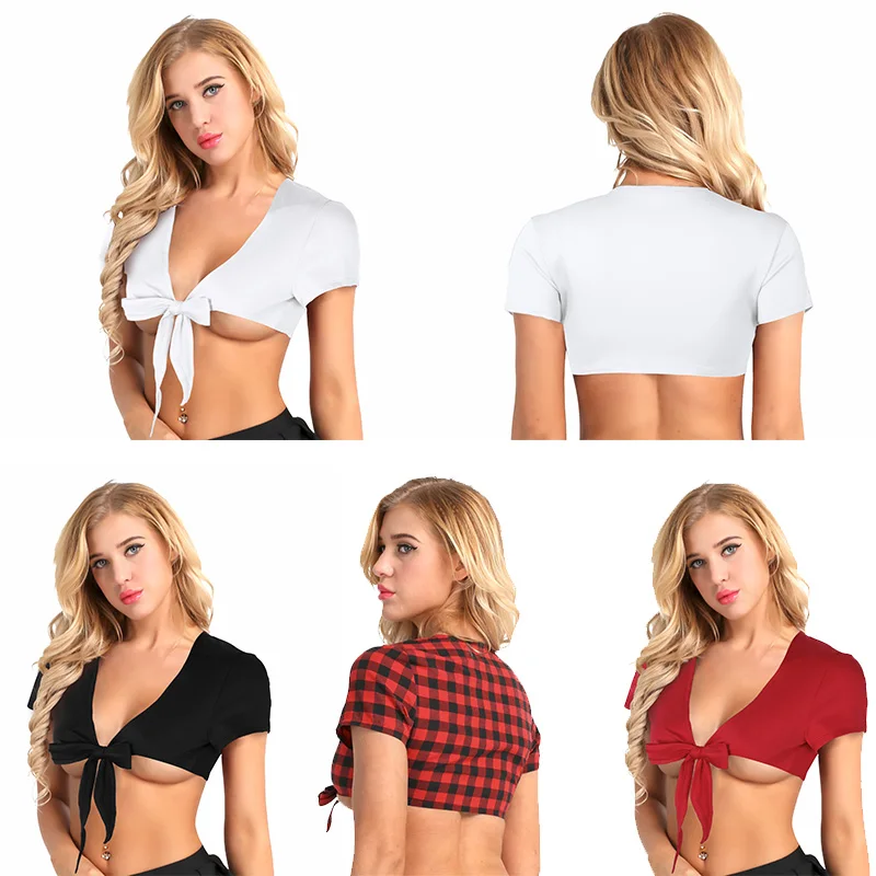 Women Sexy Solid Deep V Neck Crop Wrap Knot Slim Fitted Crop Tops T Shirt Summer Clubwear 2021 Short Sleeve Tshirt Tops