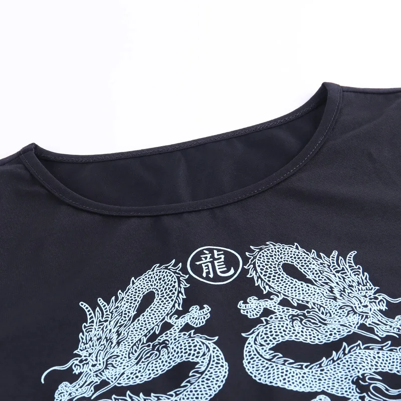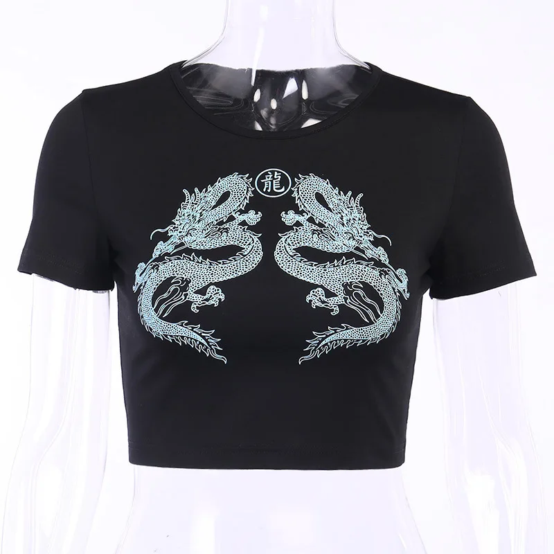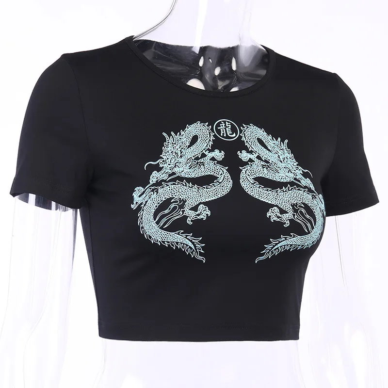 Women Short Sleeve Dragon Print T-shirt Summer Fashion Crop Top for Shopping Daily Wear