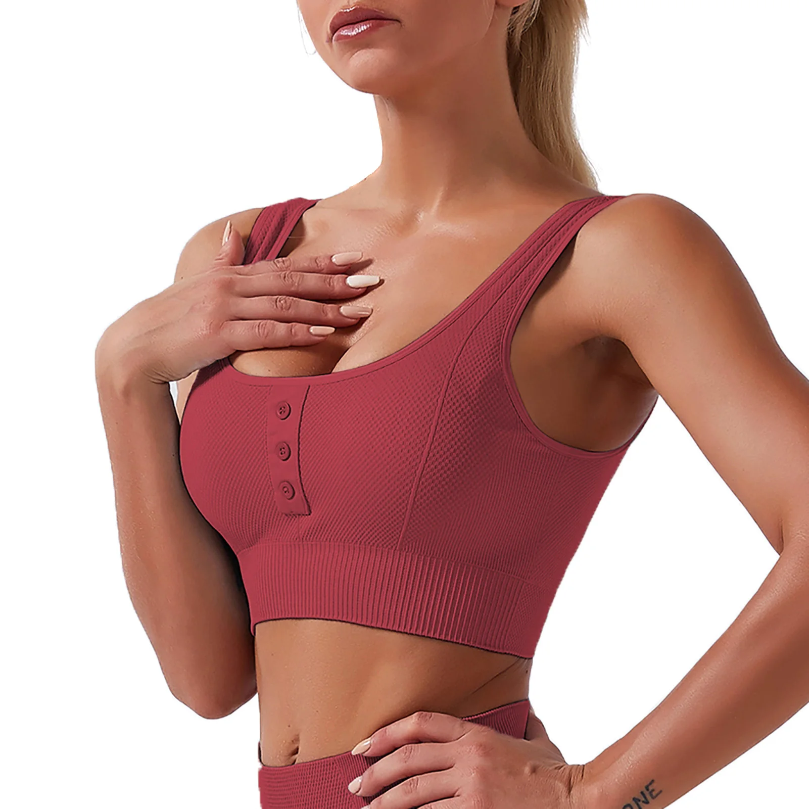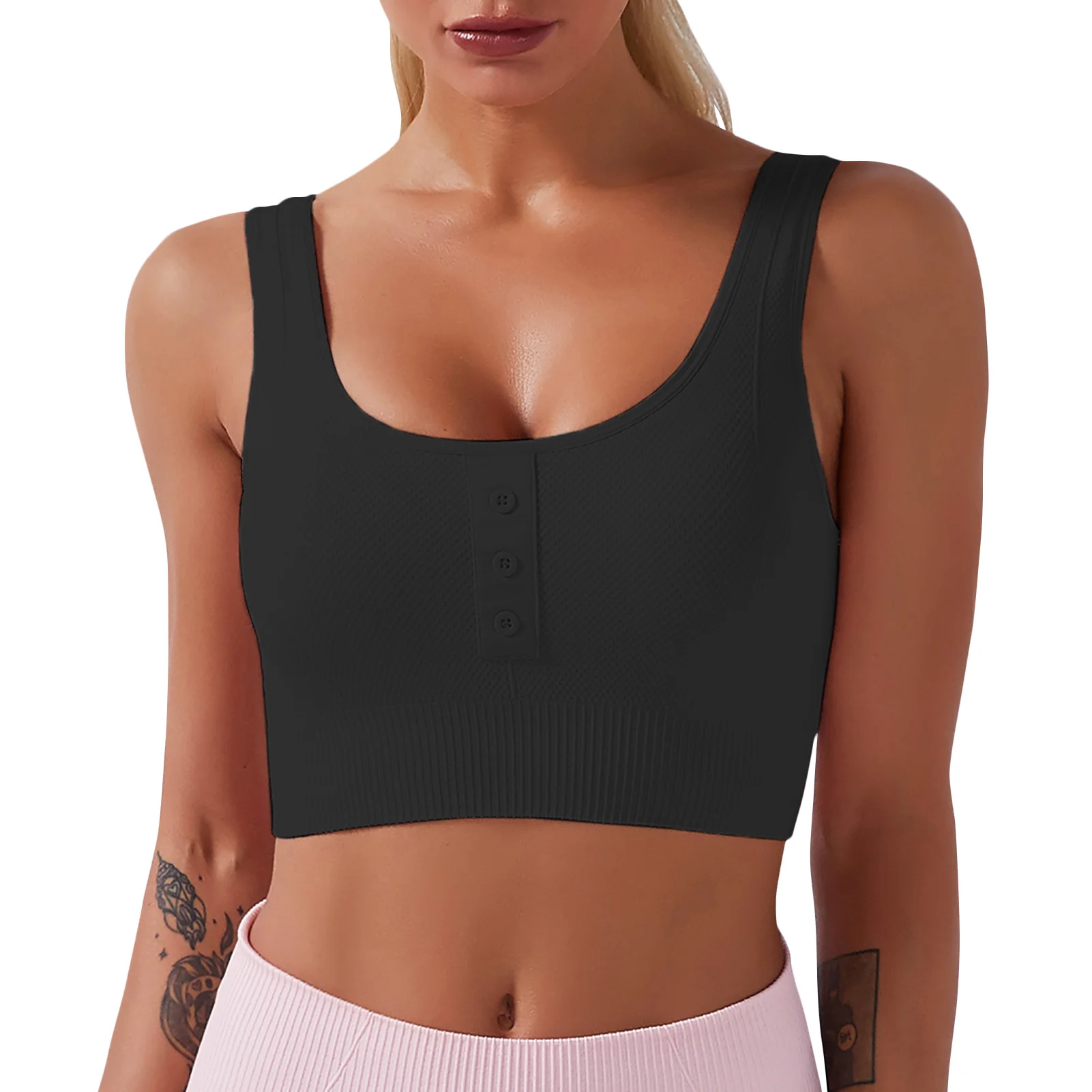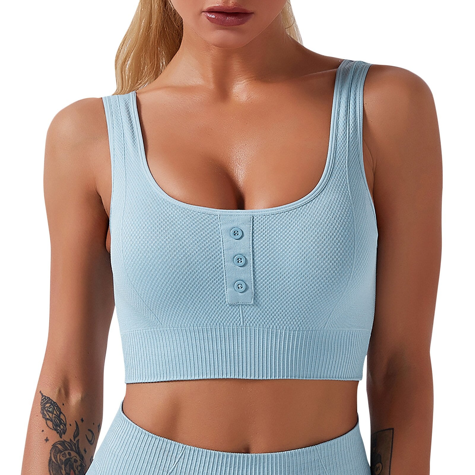 Sports bra with front buttons detailing.