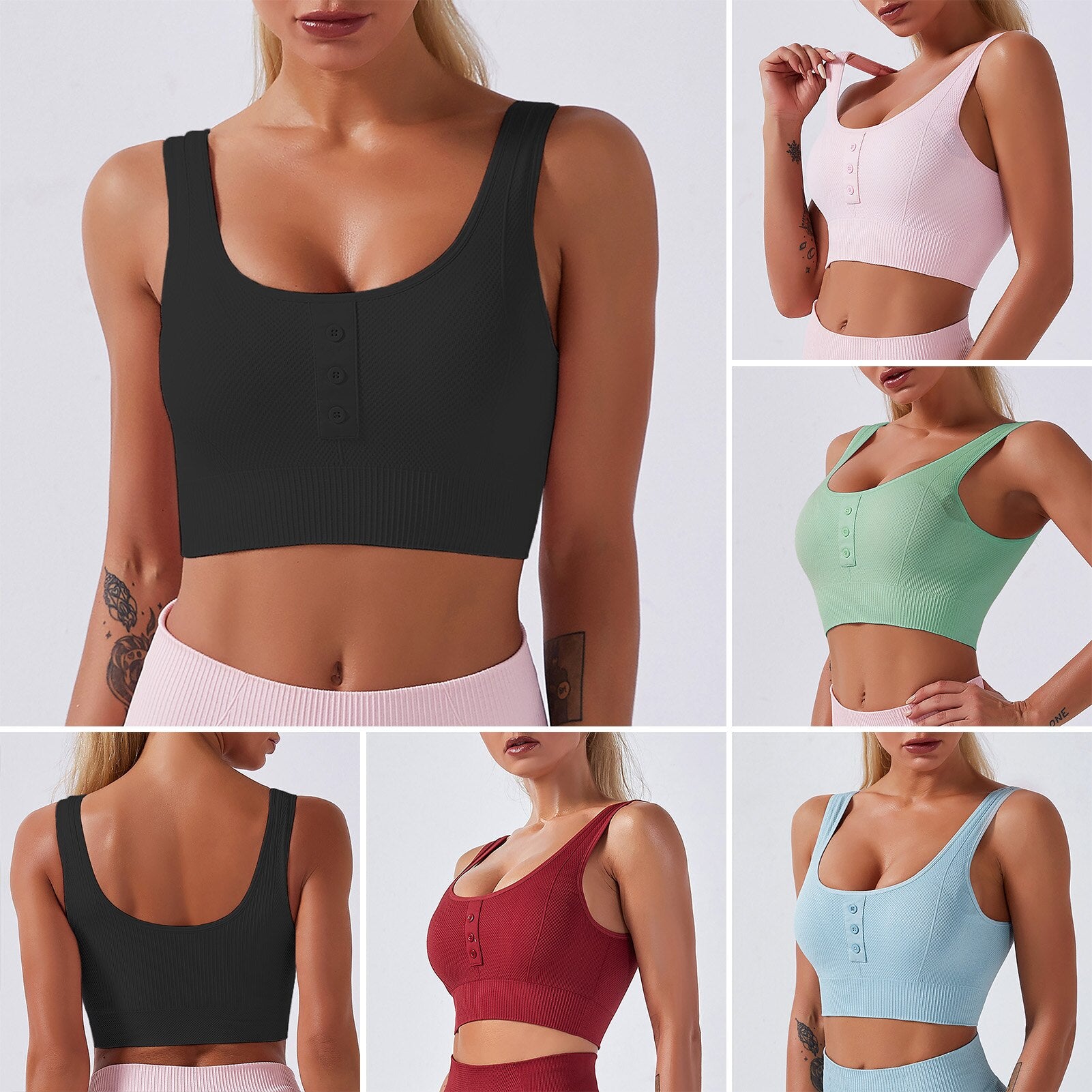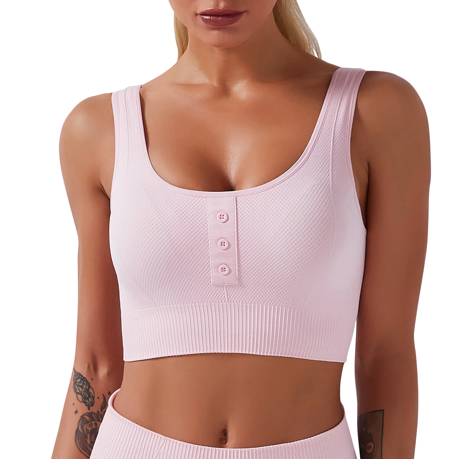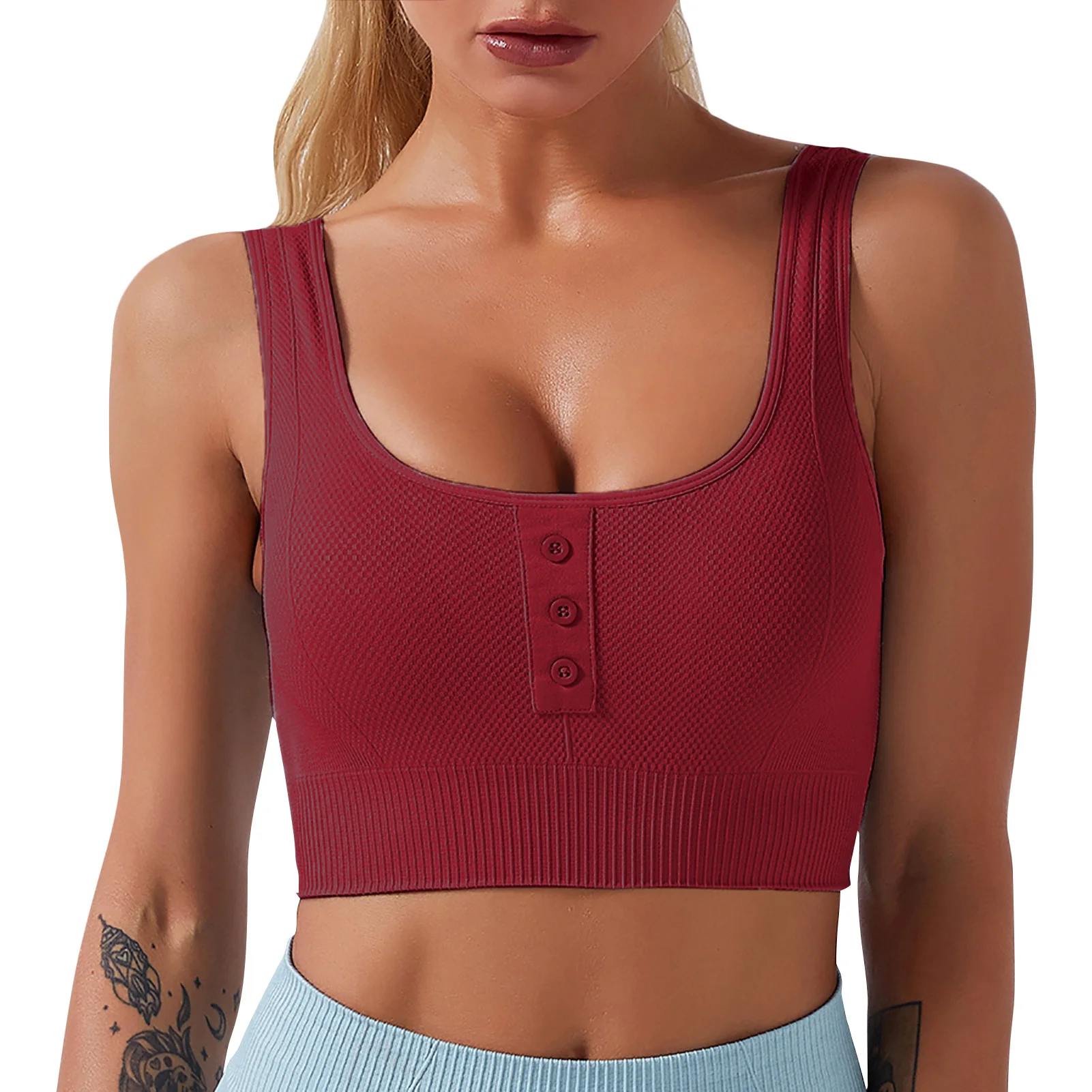 Sports bra with front buttons detailing.