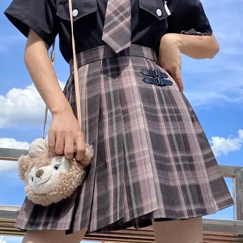 Women Summer Preppy Style Harajuku Sweet Kawaii Pleated Plaid Skirt Korean High Waist Mini A-Line Jk Uniform Short Skirts Female