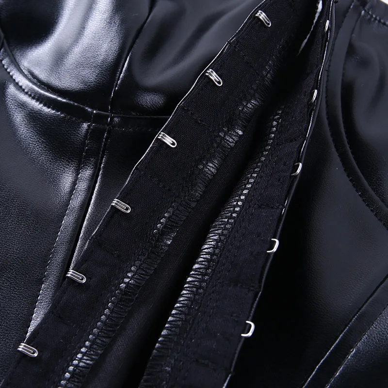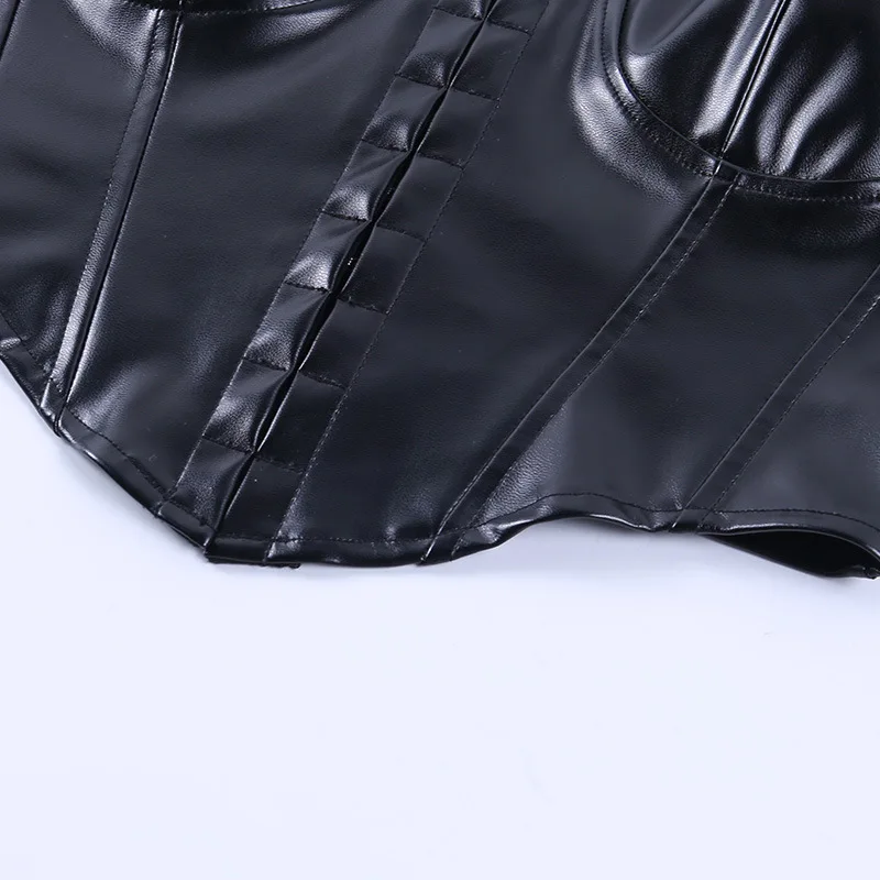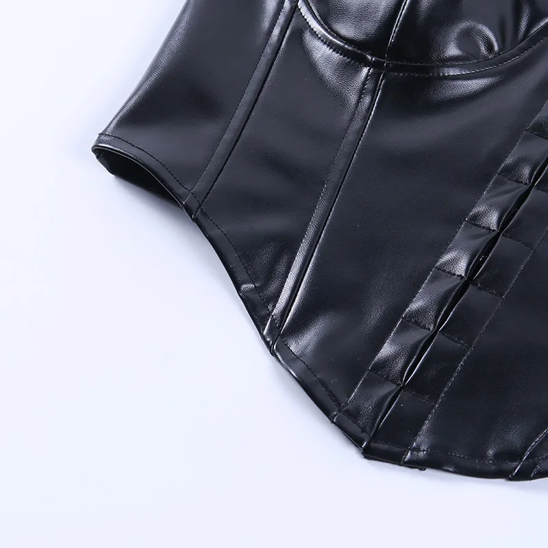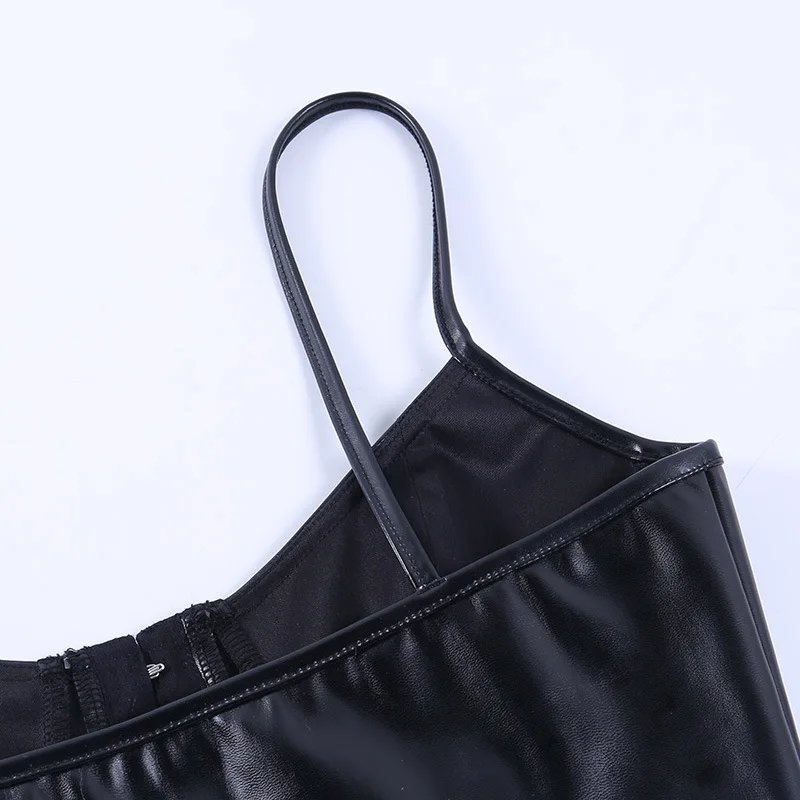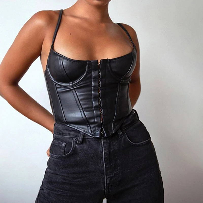 Women's Corset Sexy Low-cut Bustier Sling PU Crop Top Punk Rock Style Camisole Club Party Outfits Casual Streetwear 2021 New