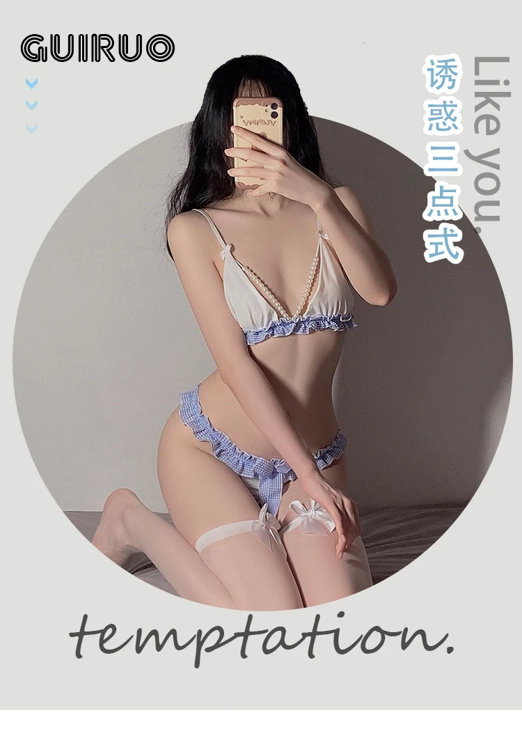 Women's Erotic Lingerie Sexy Pearl Small Chest Bed Plaid Three Firing Spicy Passion Uniform Set