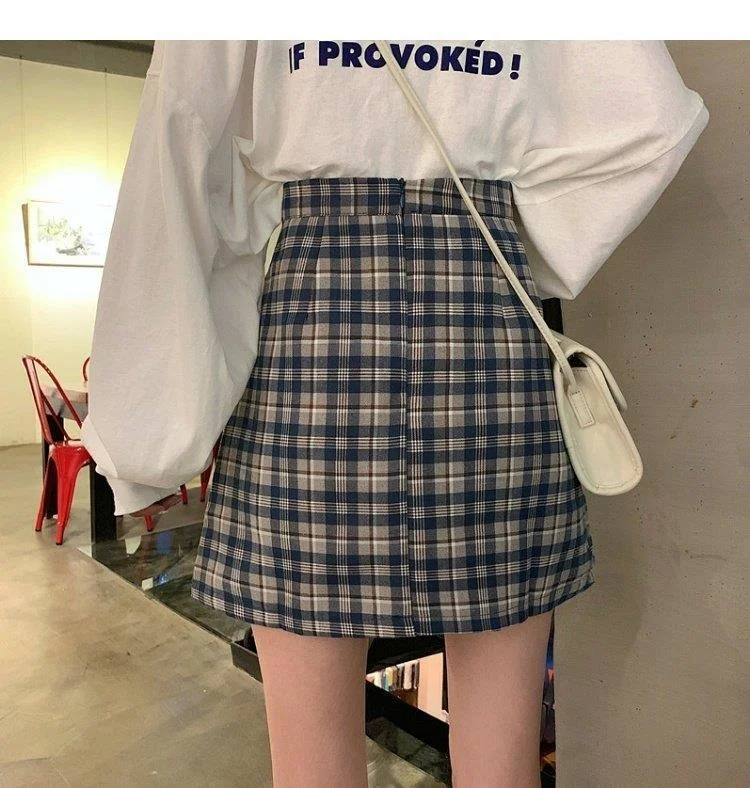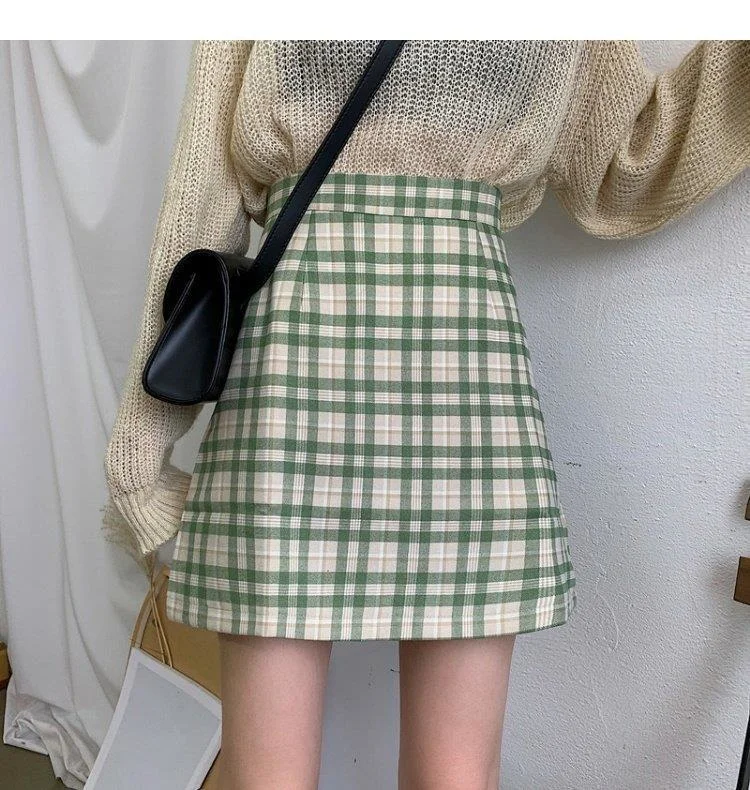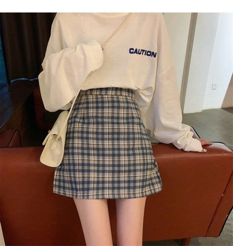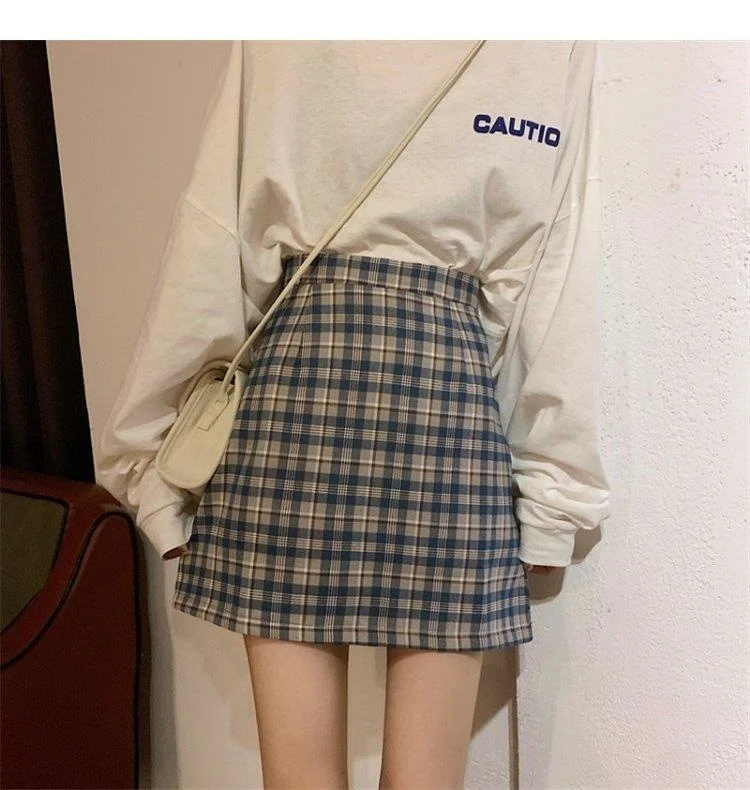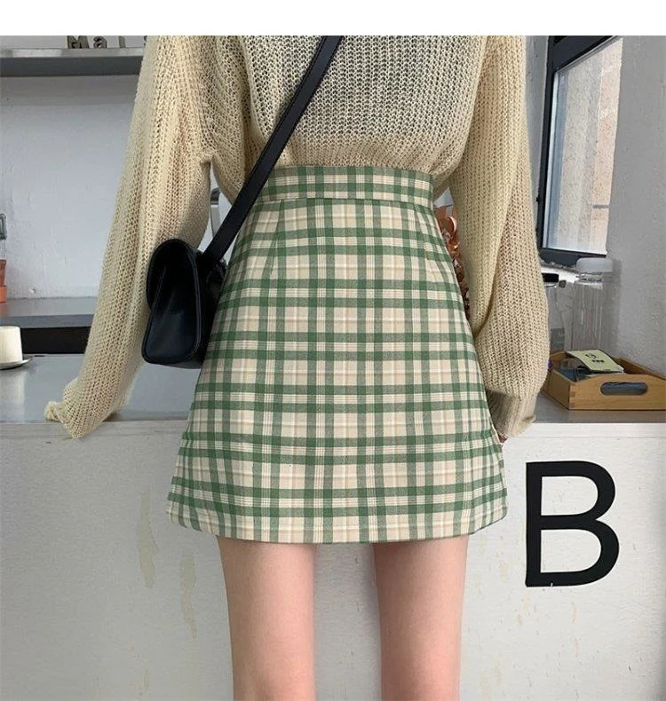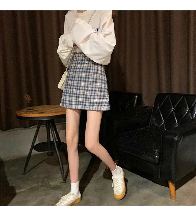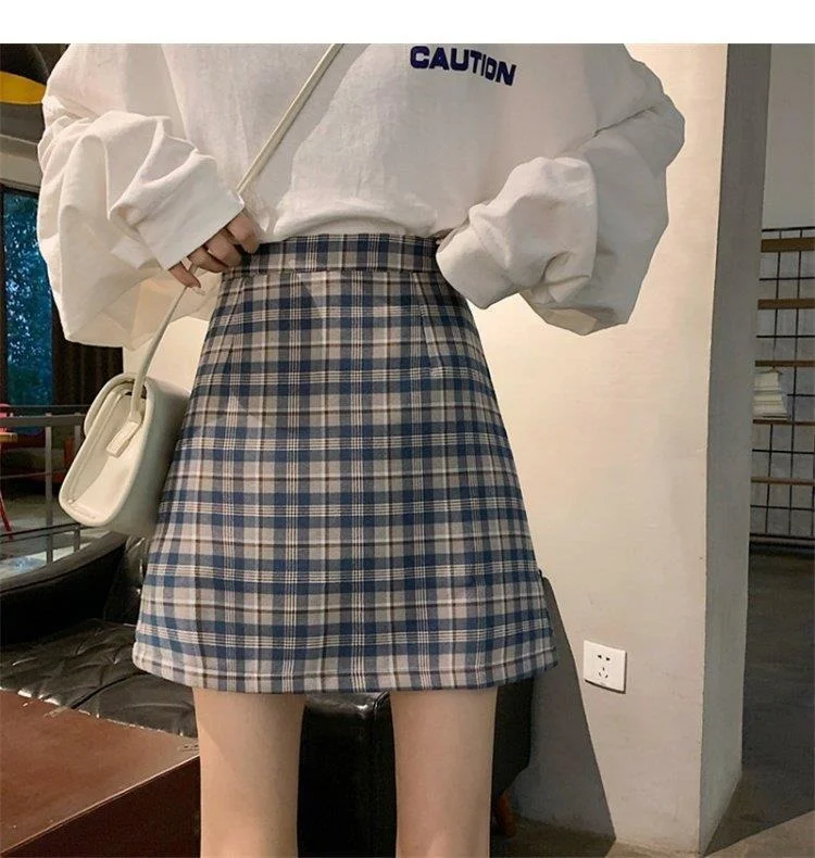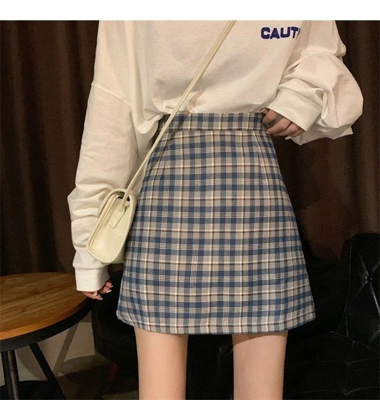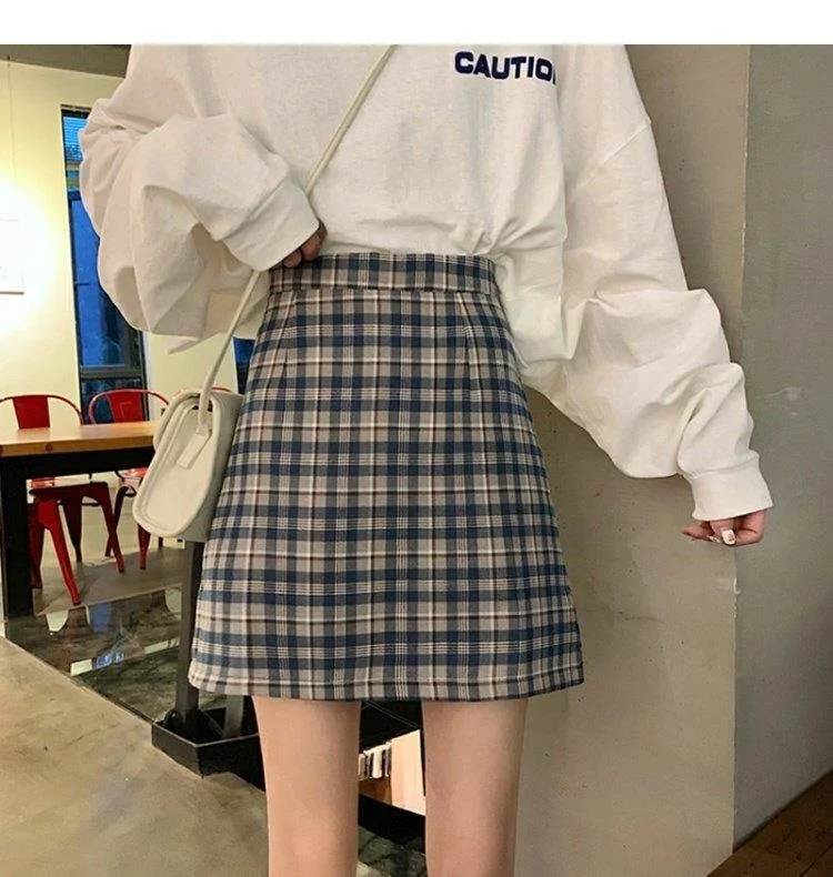 Women's Skirt Spring and Autumn Latest A- line Sheath Skirt High Waist Slimming Cover Vintage BM Plaid Skirt Summer