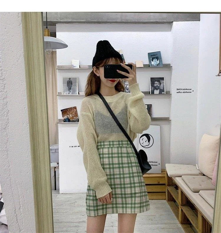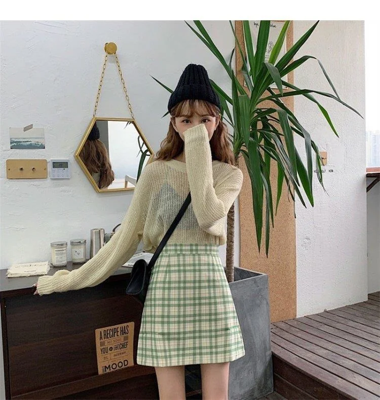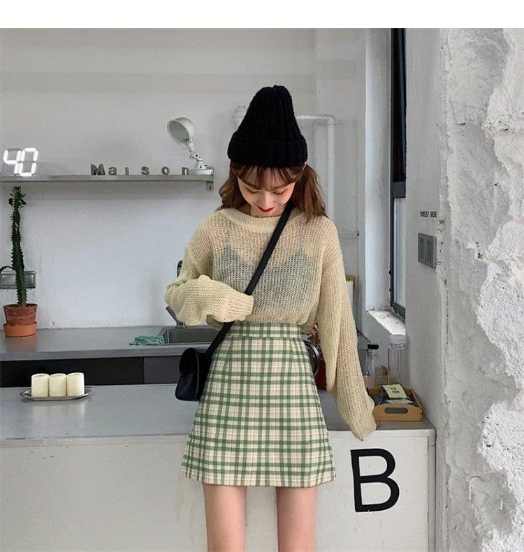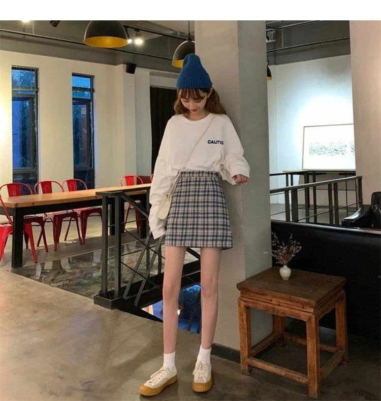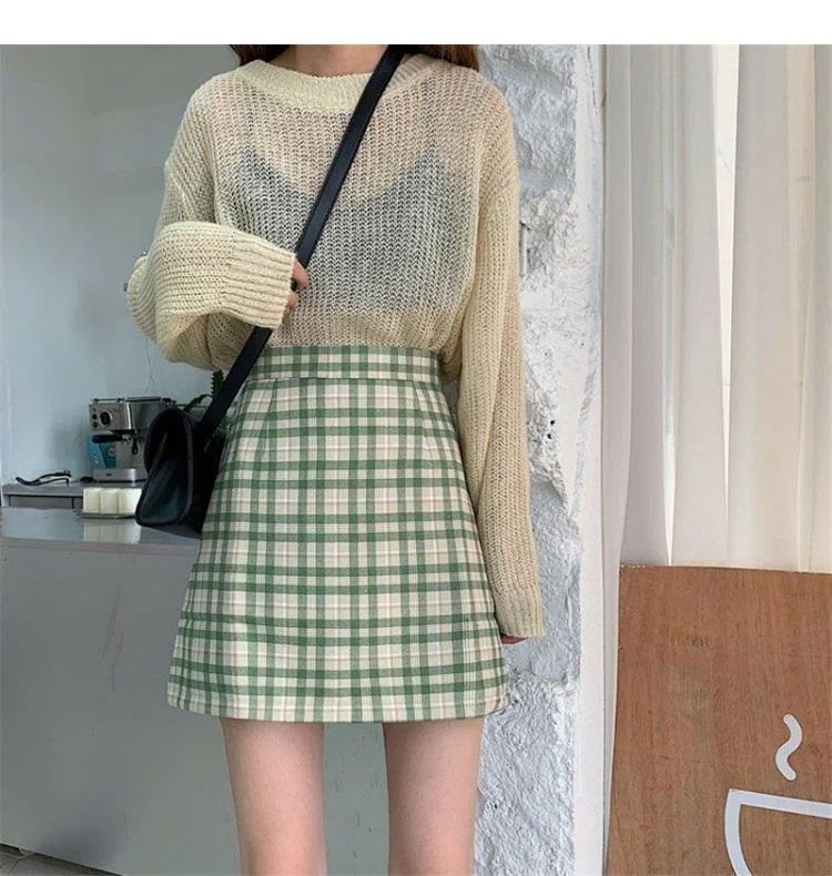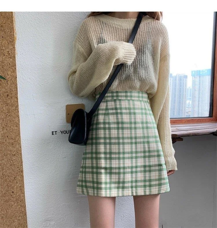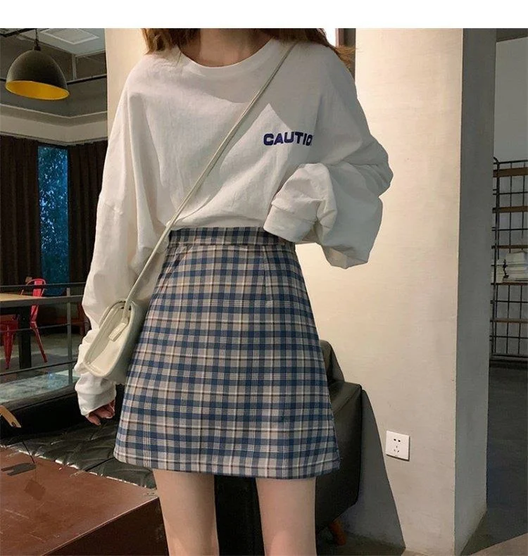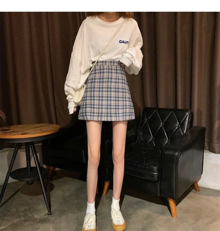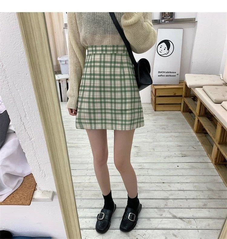Women's Skirt Spring and Autumn Latest A- line Sheath Skirt High Waist Slimming Cover Vintage BM Plaid Skirt Summer