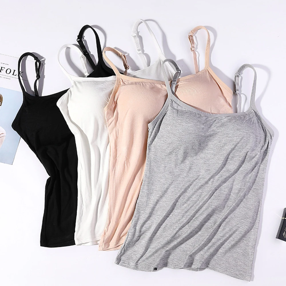 Yoga Shirt Beauty Back Padded Bra Modal Adjustable Spaghetti Straps Tops Women Yoga Vest Sleeveless Tank-Tops Camisole with Bra