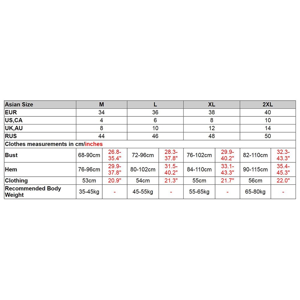 Size: M (US4 UK/AU8 EU34) / L (US6 UK/AU10 EU36) / XL (US8 UK/AU12 EU38) / 2XL (US10 UK/AU14 EU40) (optional)