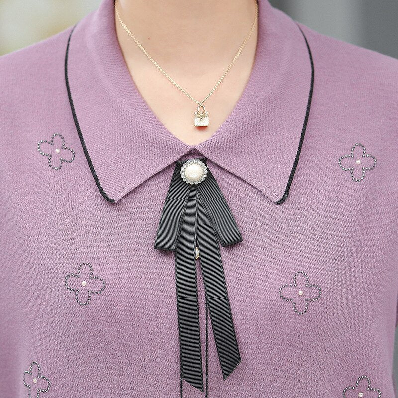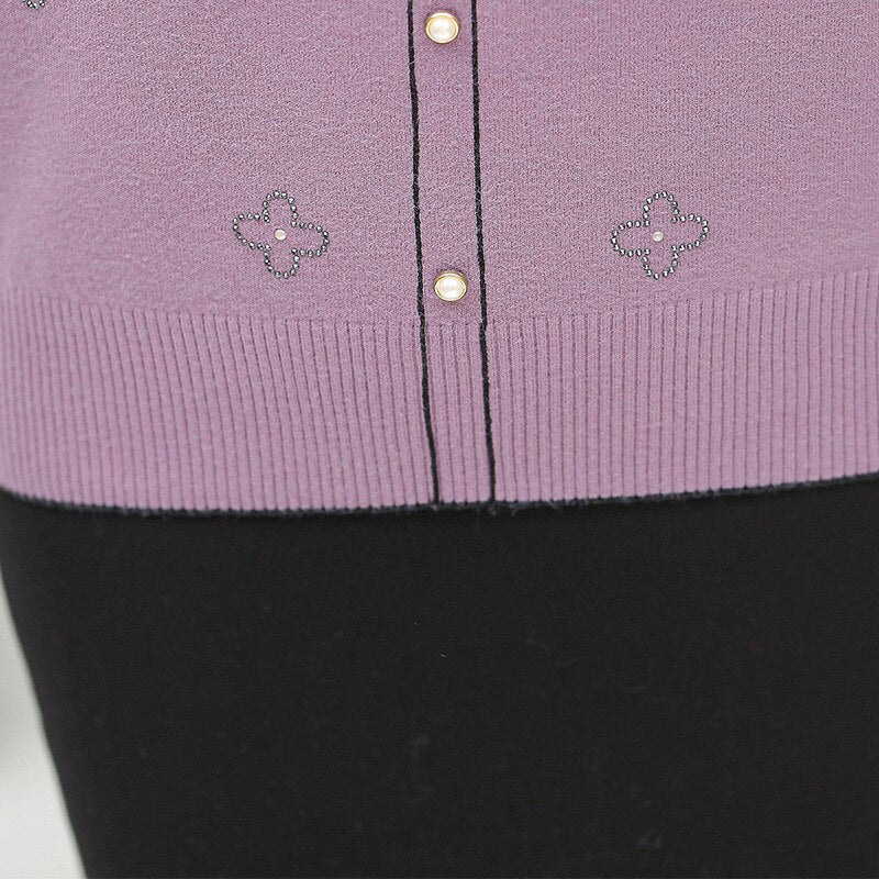 Young Mother Spring And Autumn Fashion Middle-Aged Women'S Knitted Thin Lapel Long Sleeve Printed Sweater