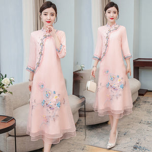 2021 New Plus size Chinese Style Hanfu Dress for Elegant Women Embroidery Improved Cheongsam Traditional Robe Dress M-4XL