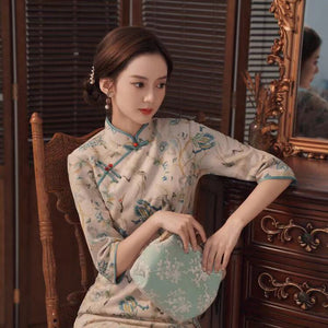 Old Shanghai Improved Cheongsam Women Chinese Qipao 2021 New Mid-sleeve Young Mid-length Dress Girl Retro Republican Style