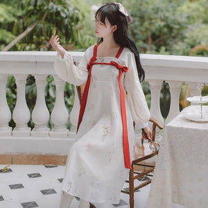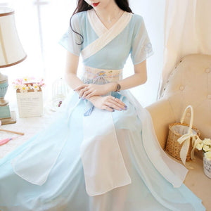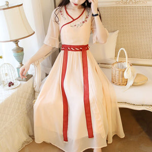 Traditional Ancient Chinese Style Summer Hanfu Costumes Women Daily Embroidery Oriental Han Dynasty Student Slim Chiffon Dresses
