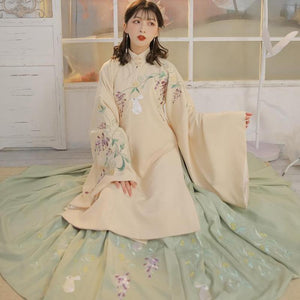 • Hanfu New Ancient Style Chinese Style Embroidery Women's Two-Piece Suit Improved Cheongsam Stand Collar Soft Skin-Friendly Dress