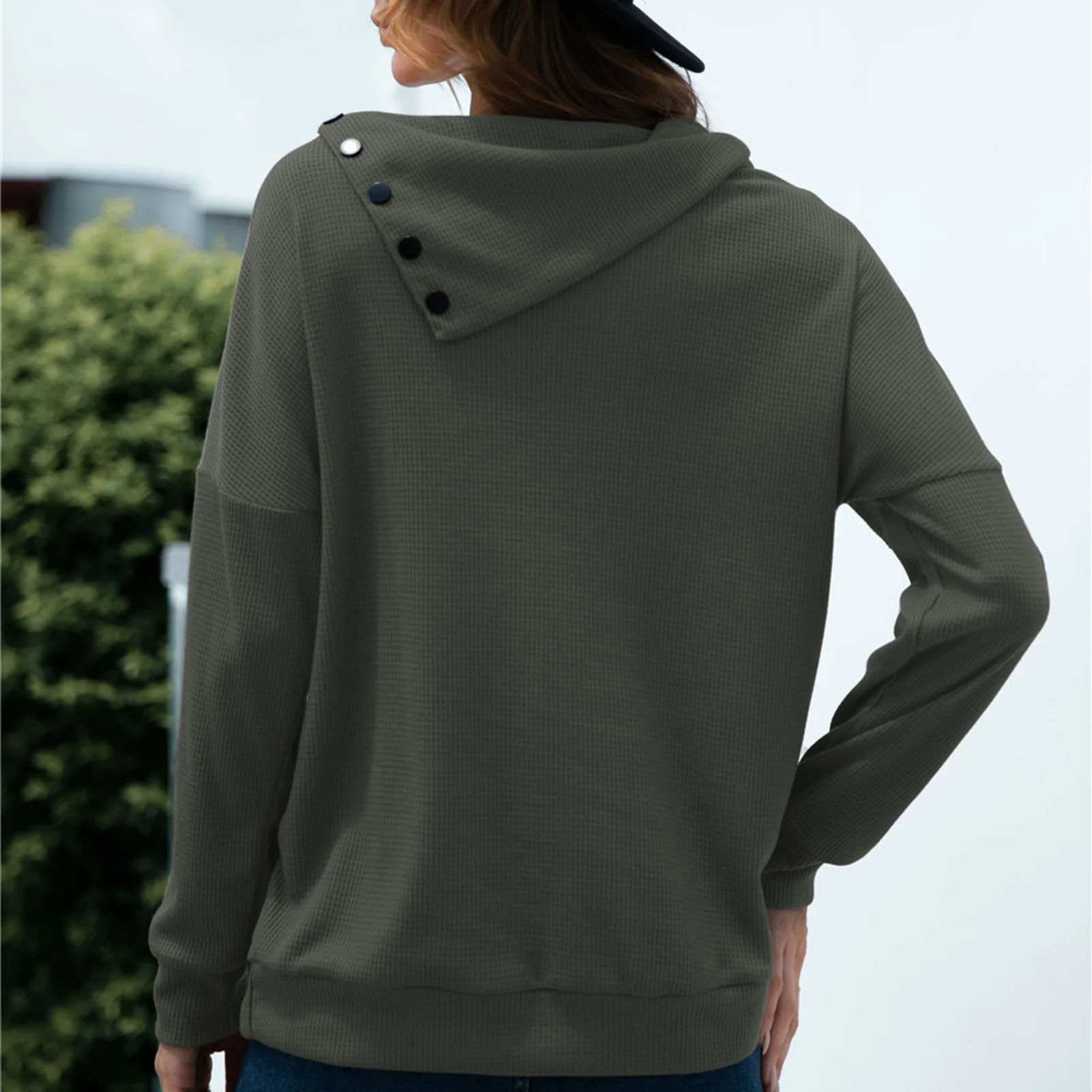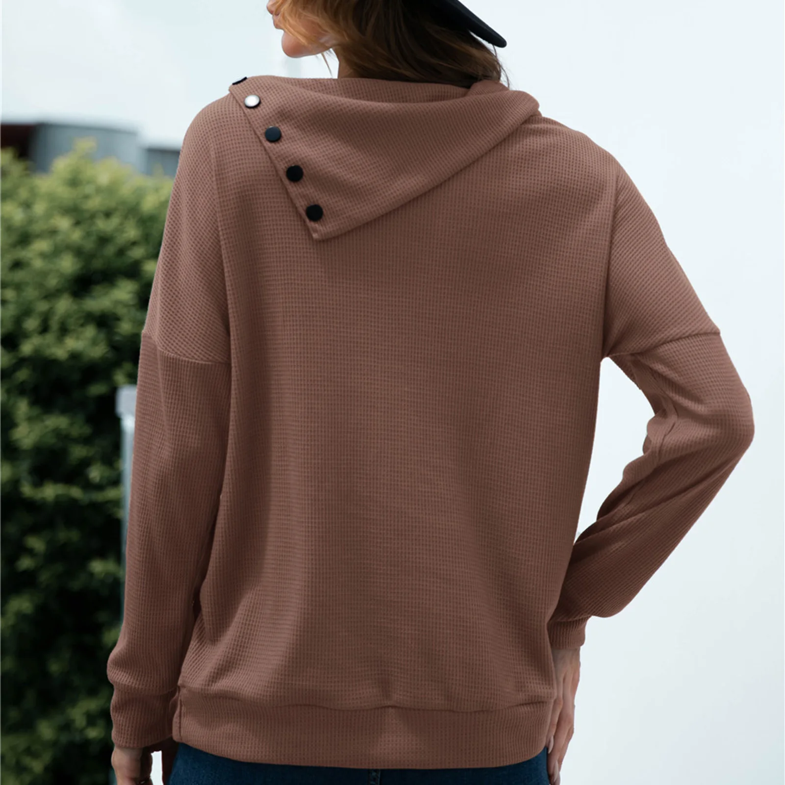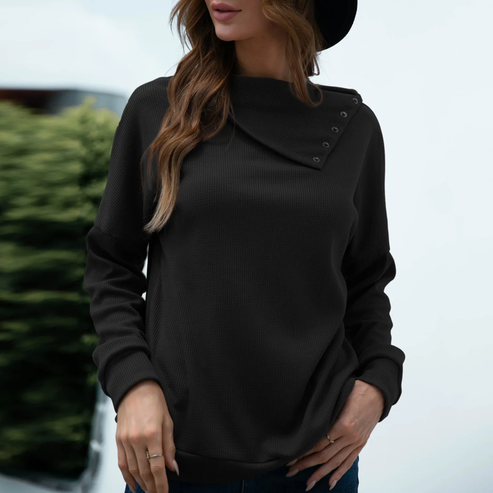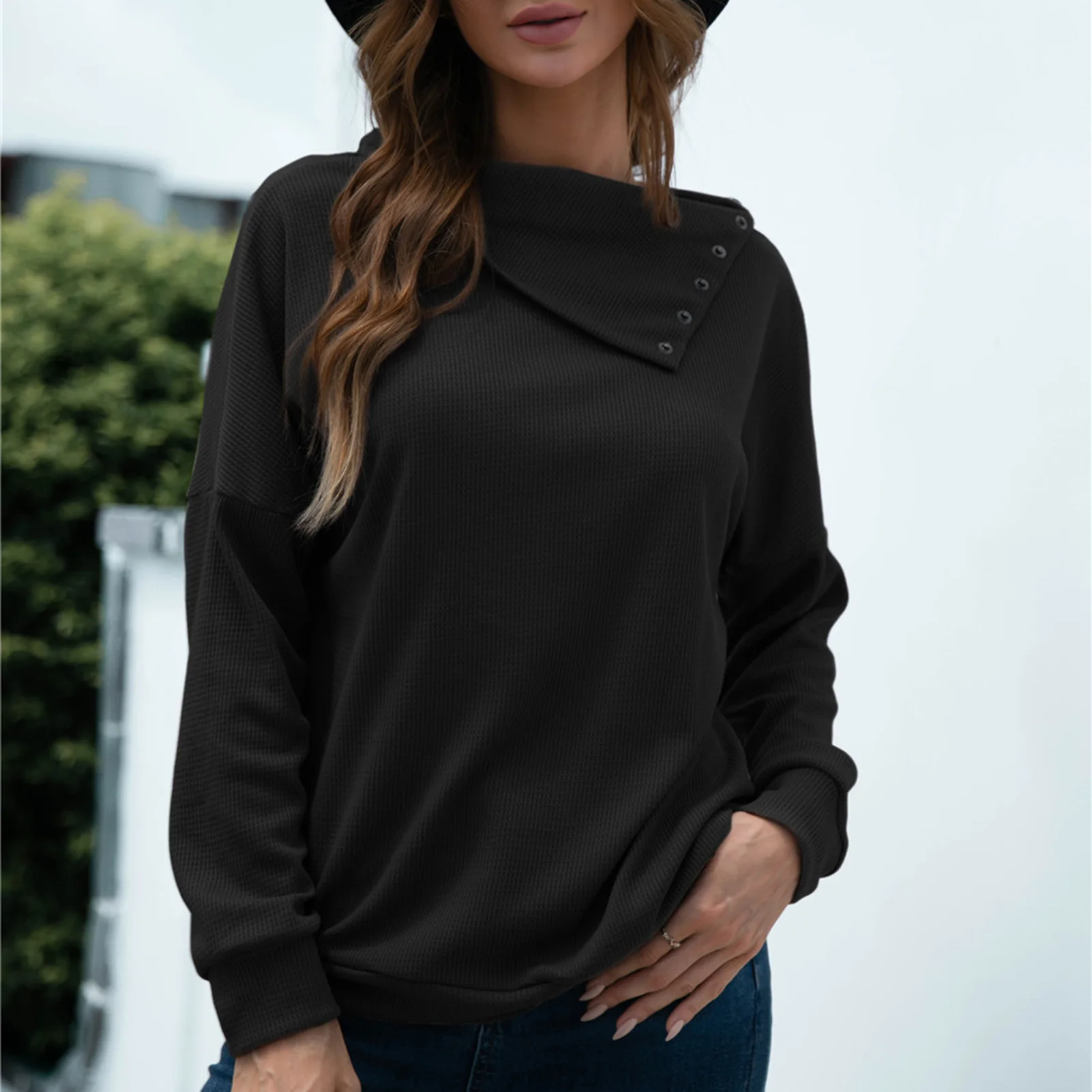 Loose casual tops in waffle-knit feature an asymmetric turn-down collar, long sleeves, and solid color, soft and comfy to wear on fall and winter days. Add it to your wardrobe for a new look.