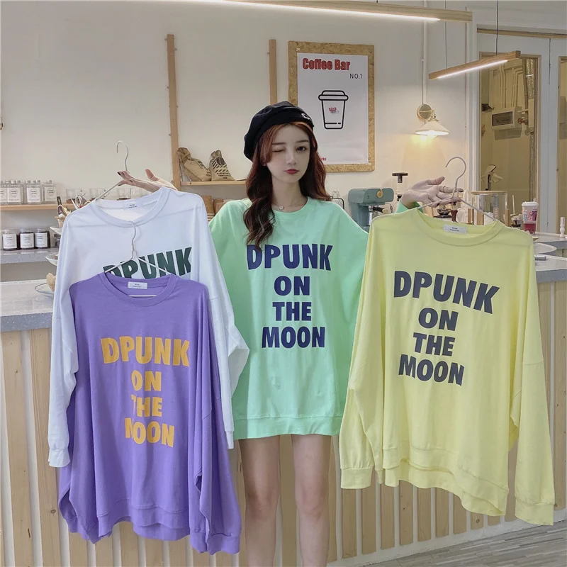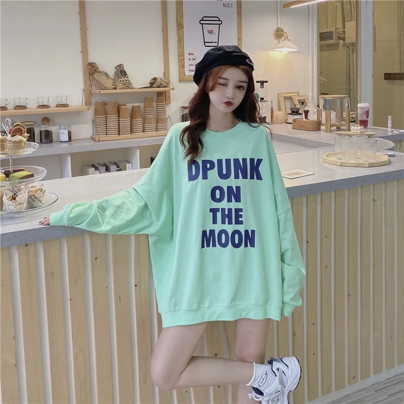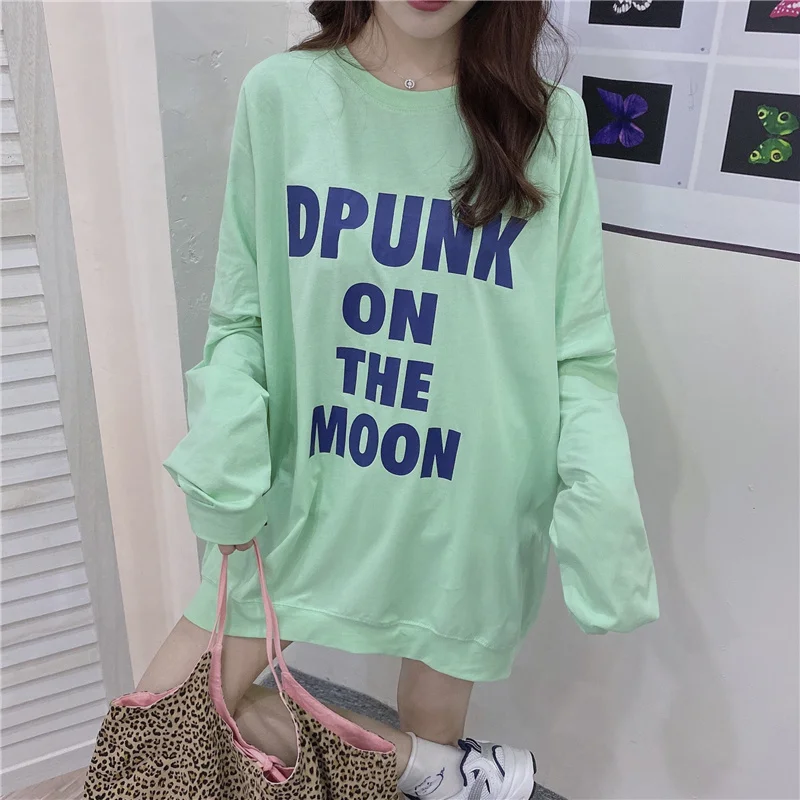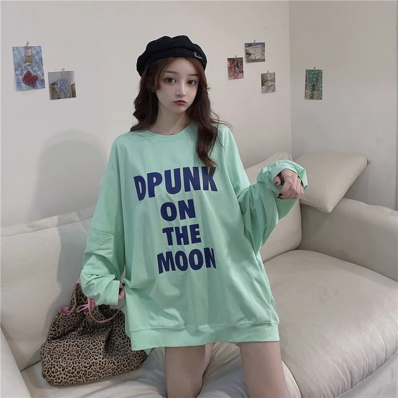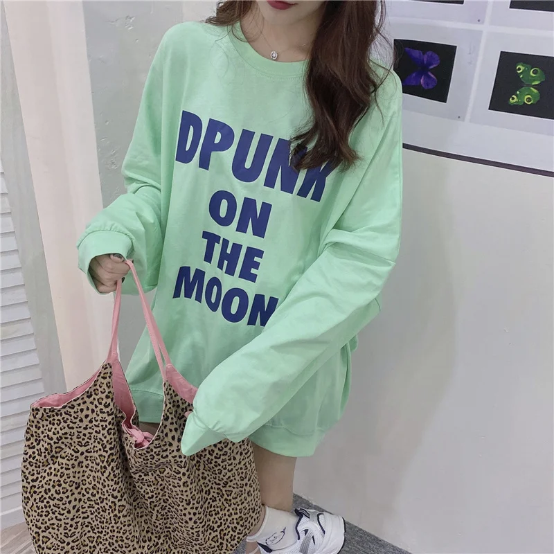 Real Shot Korean Style Letter Print Pullover Long Sleeve 2021 Fashion Korean Hoodies Oversize Loose Causal Pullover Tops Female