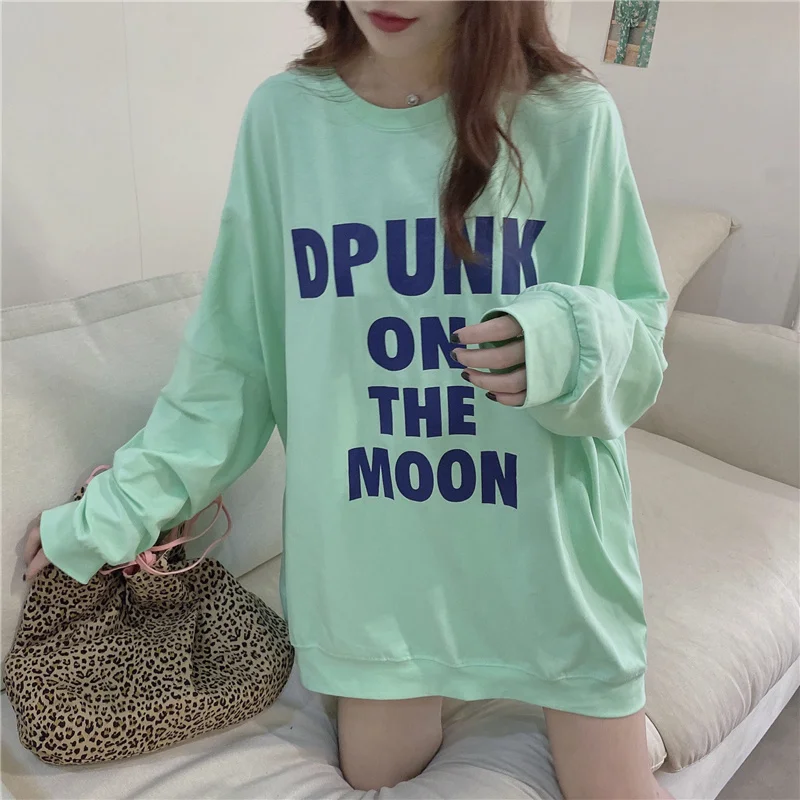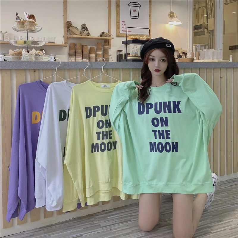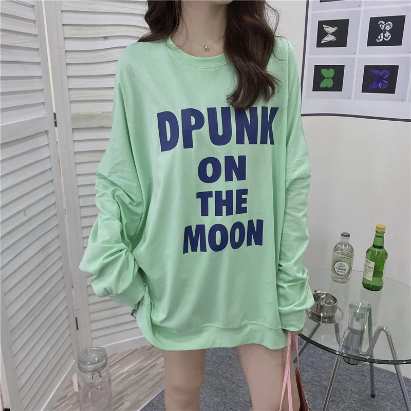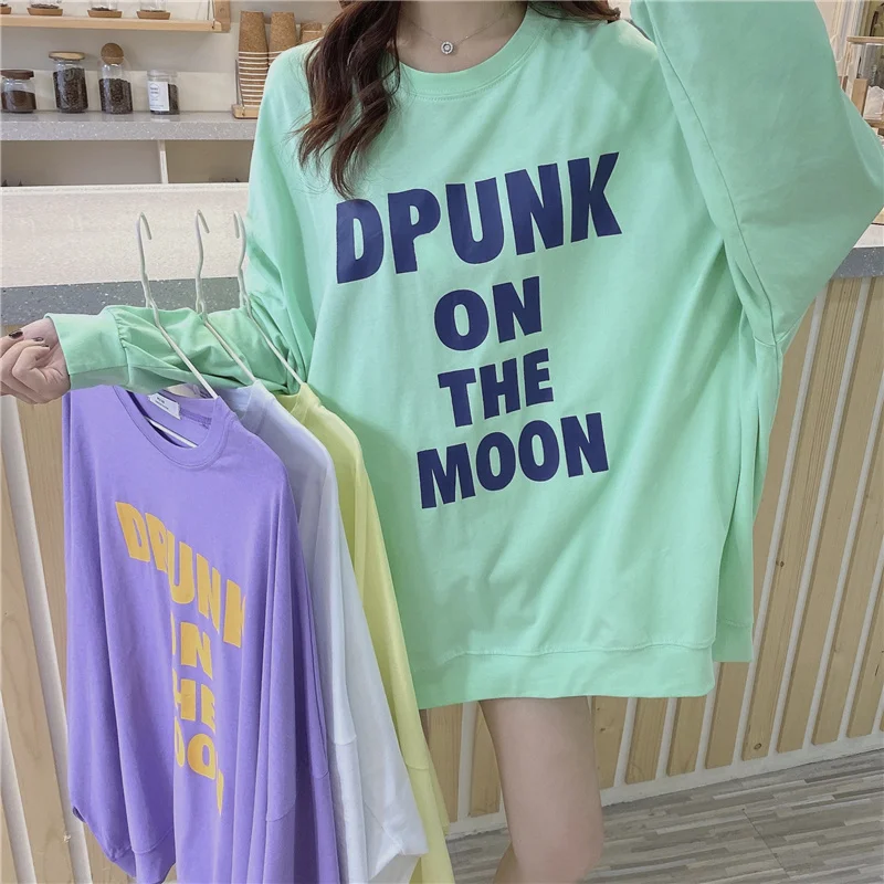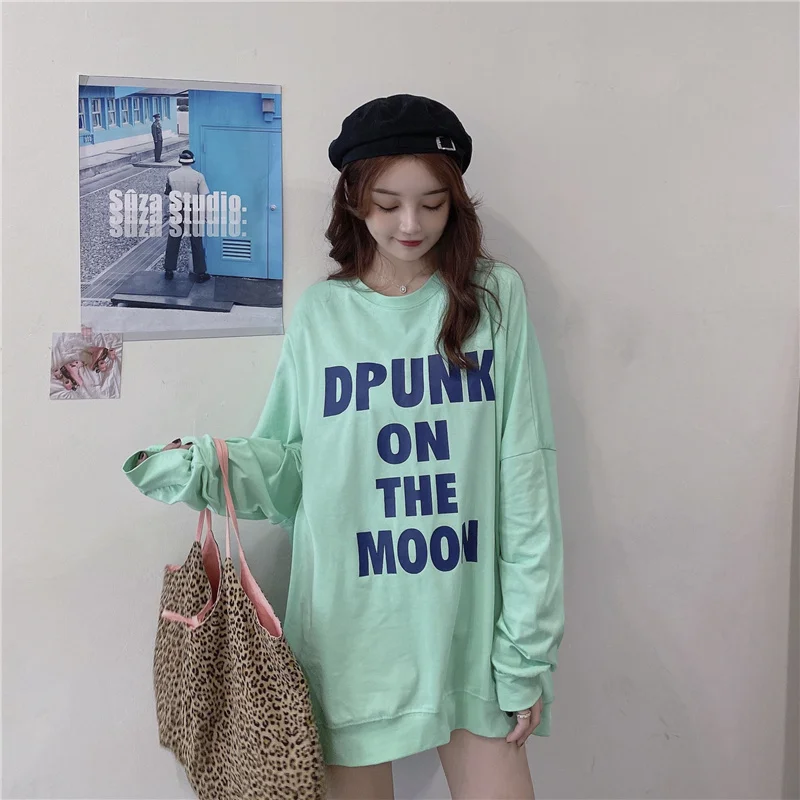 Real Shot Korean Style Letter Print Pullover Long Sleeve 2021 Fashion Korean Hoodies Oversize Loose Causal Pullover Tops Female