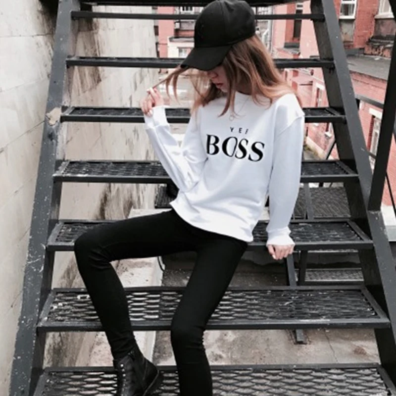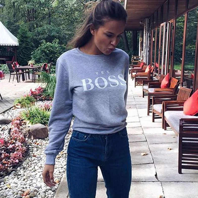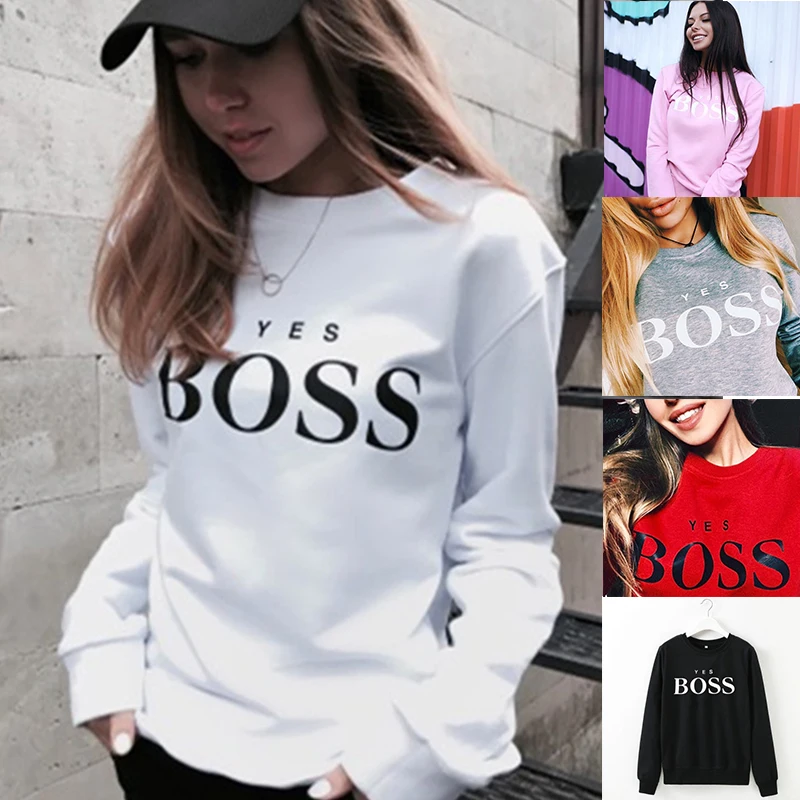 Women Long Sleeve O Neck Hoodie Boss Letter Print Sweatshirt Autumn Pullovers Sweatshirts