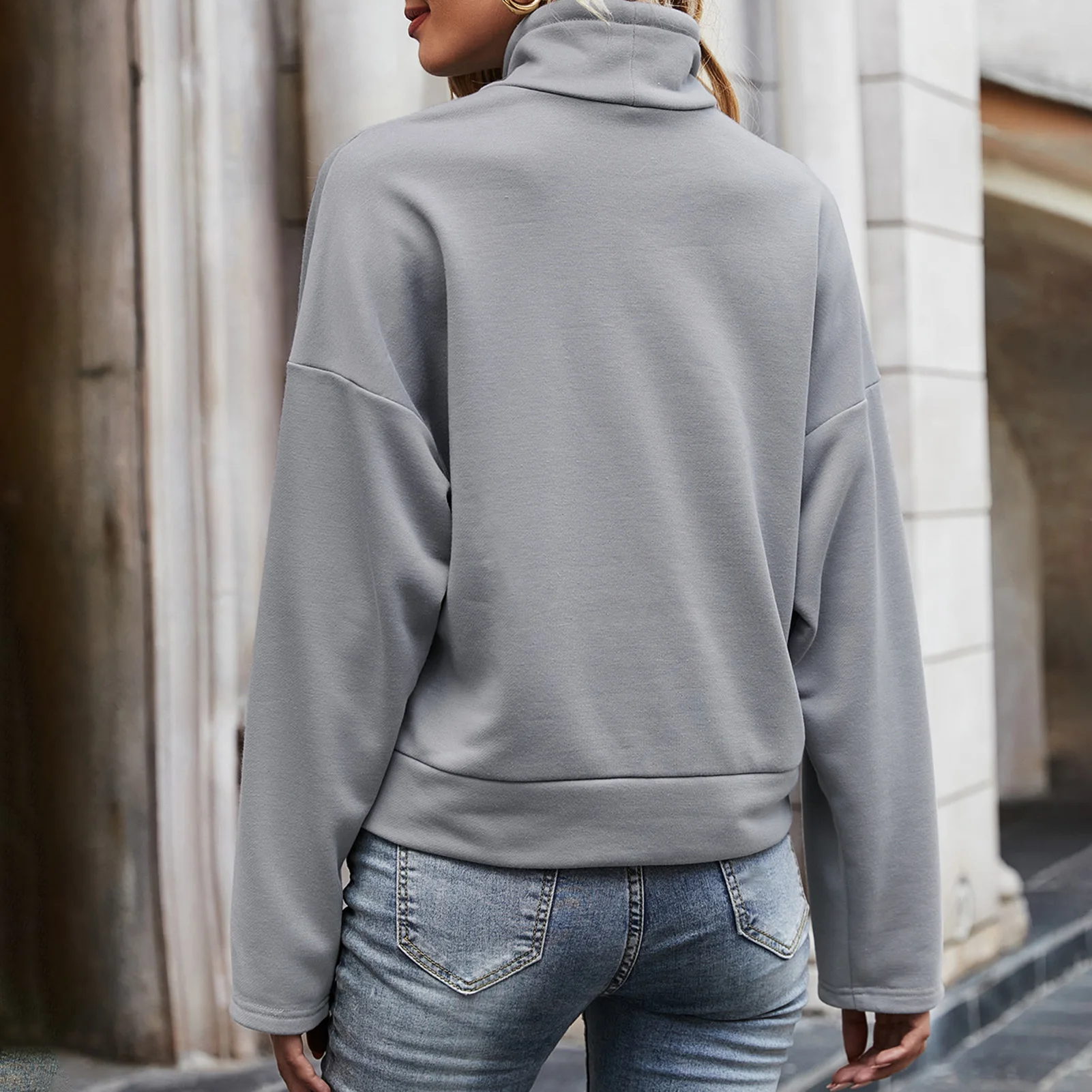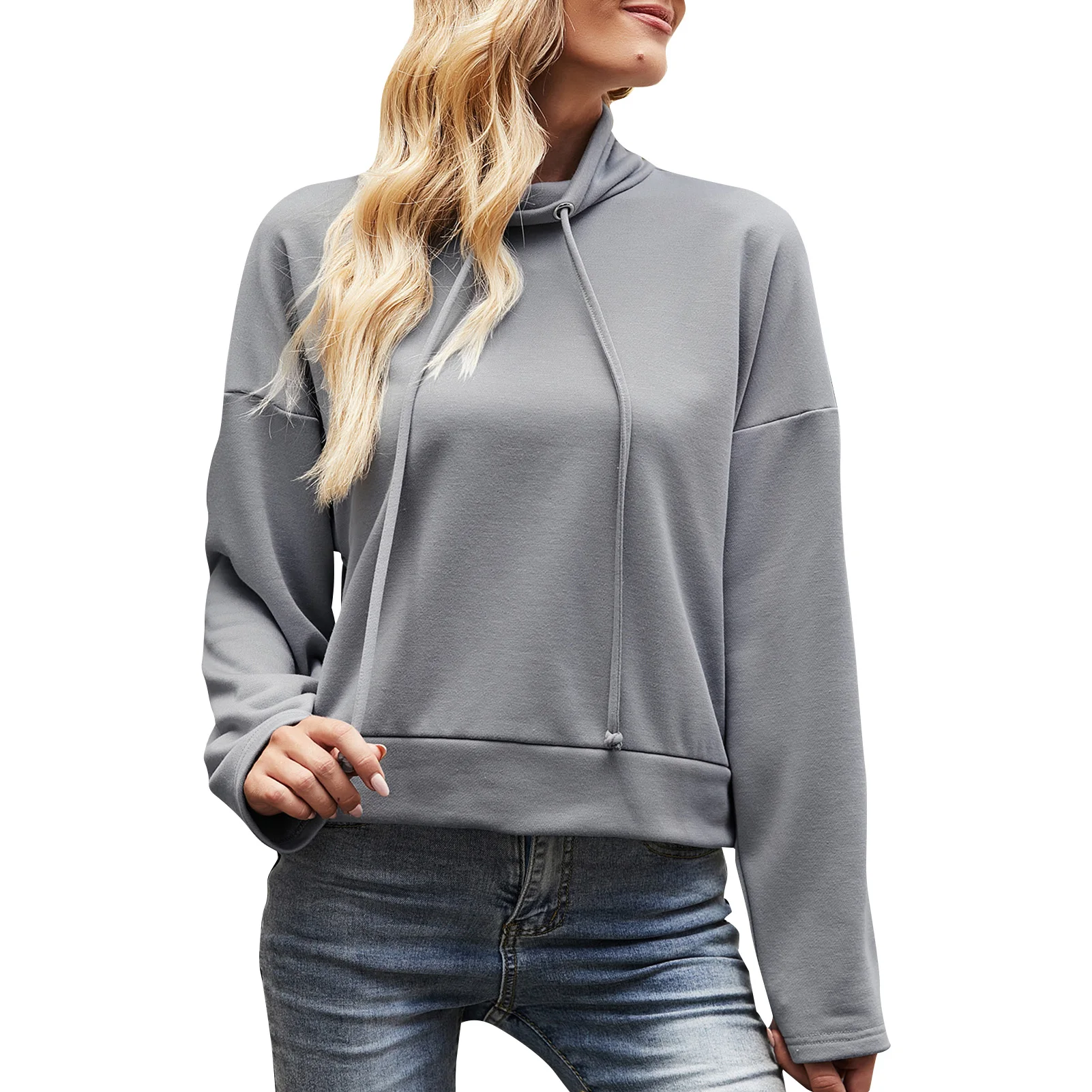 This sweatshirt features a turtleneck with drawstrings, a loose fit, and drop shoulder. Its collar can be adjusted to keep your neck warm. Update your wardrobe with this chic sweatshirt.