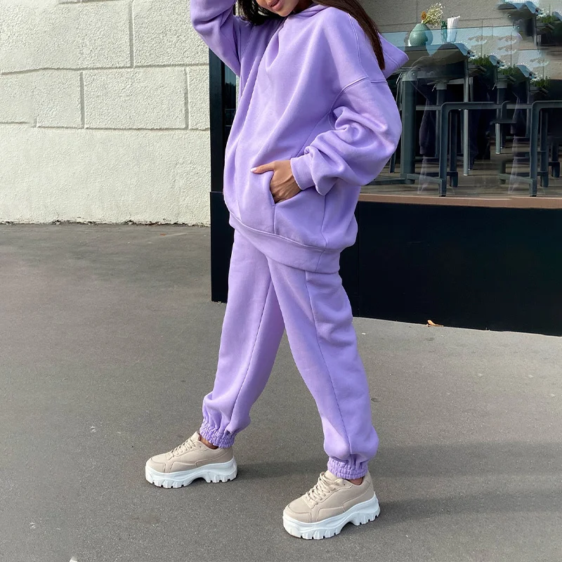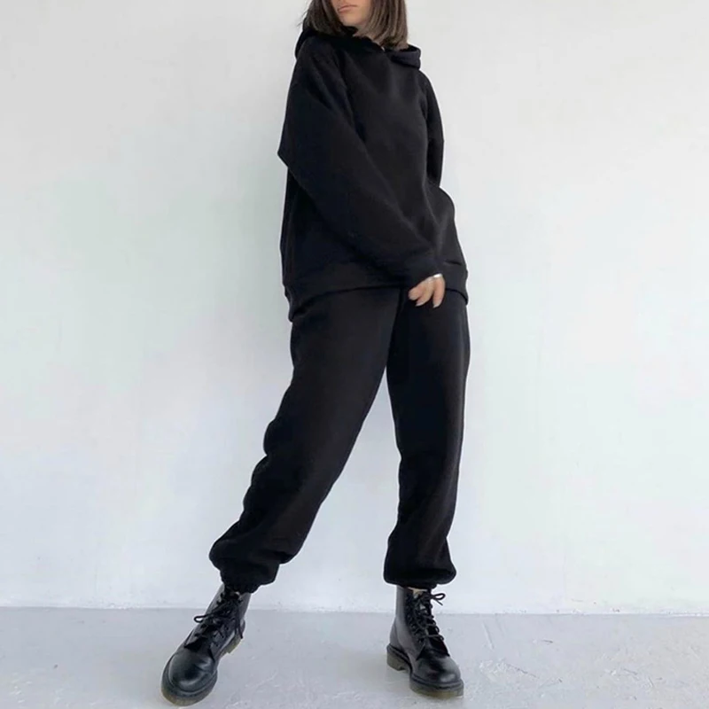 Women's Tracksuit 2021 Spring Solid Long Sleeve Oversizd Hoodies Causual Sweatshirt Long Pants Suits Set Female Sweatsuits