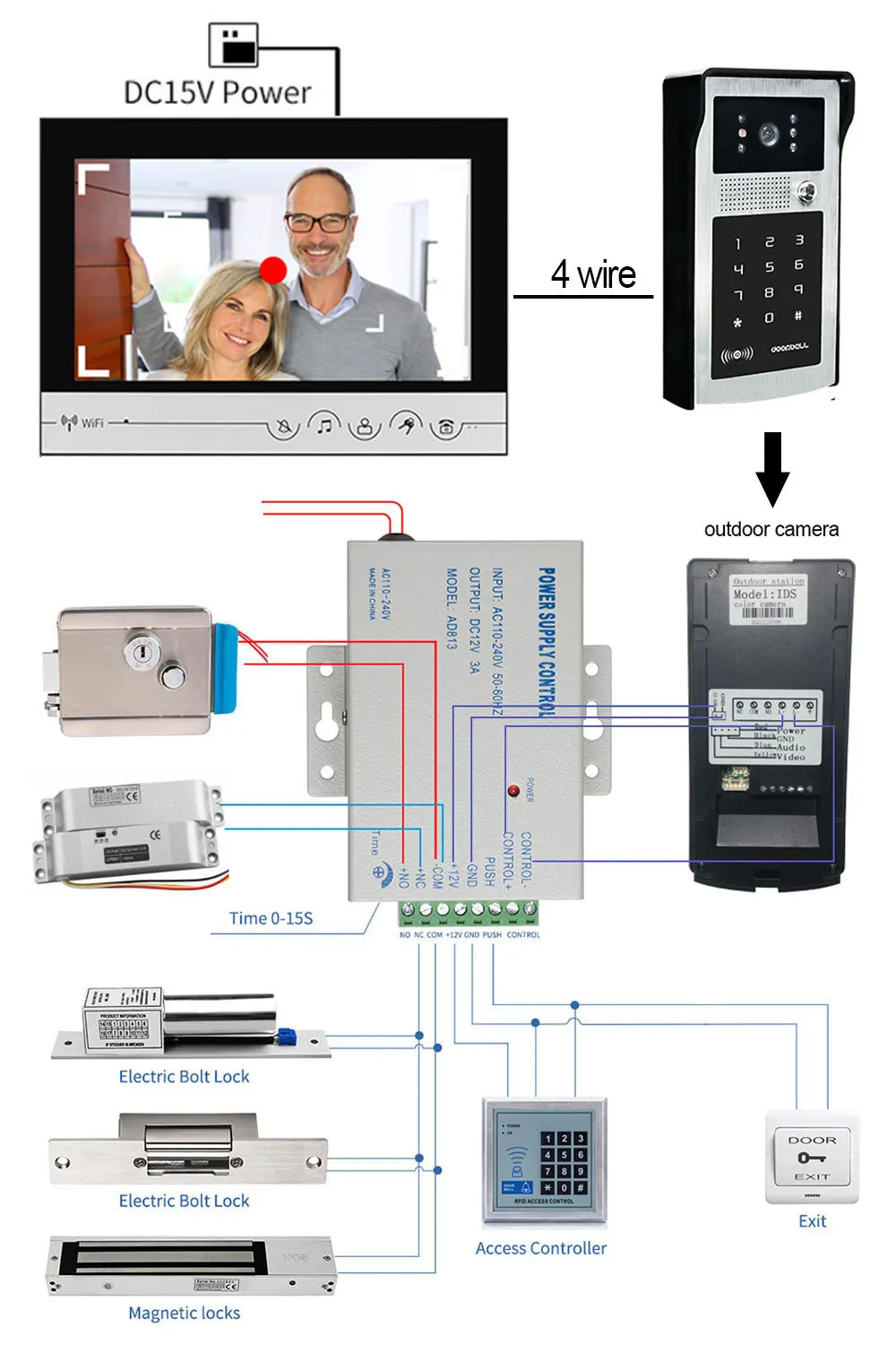 It is a 4-wire system, we will provide 4 core connectors in the package, you need use 4 core cable to do the connection. Please refer to below wiring.(Please note the e-lock / Power Supply BOX at below photo is not included, if you need, please feel free to contact us)