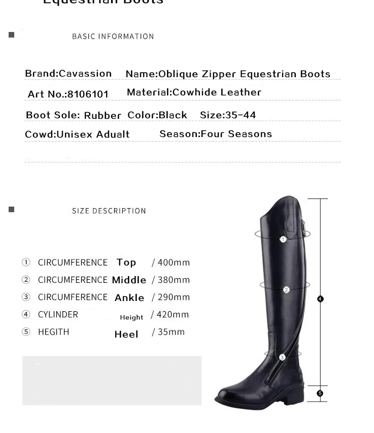 Cavassion Jodhpur Equestrian Oblique Zipper Boots Horse Riding Equipment Unique Design Exquisite Gloss Cowhide Leather