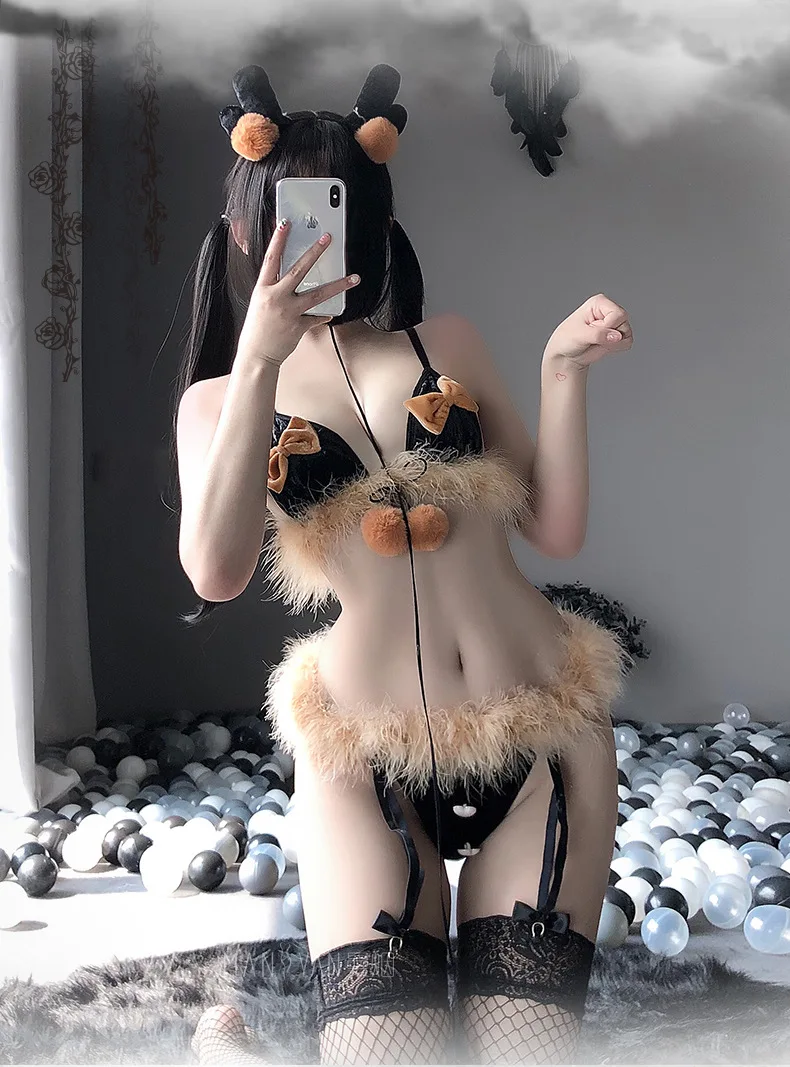 Costumes for Women Adult Stripper Outfit Maids Outfit Cute Plush Three-point Elk Uniform Bunny Girl Acting Bra and Garter Set