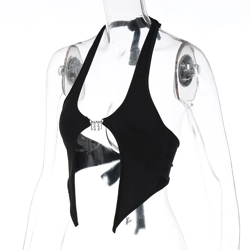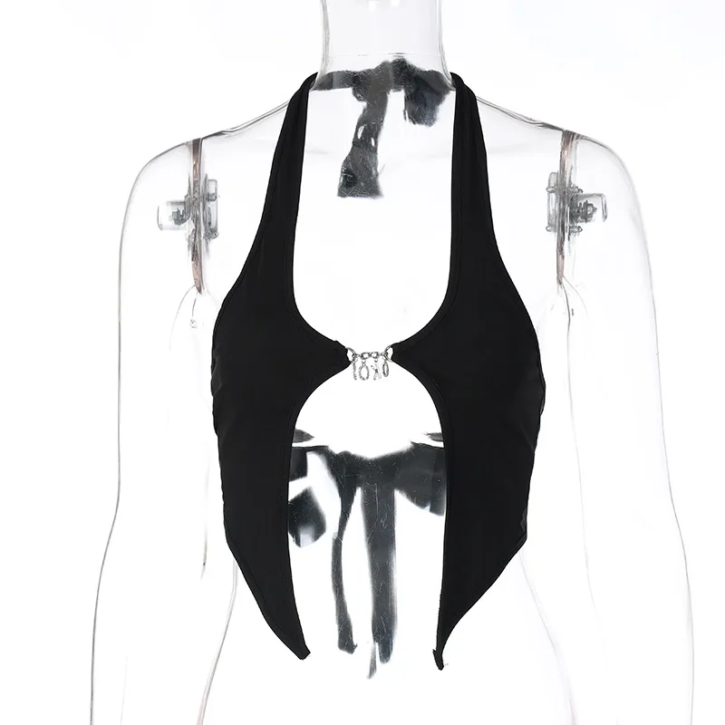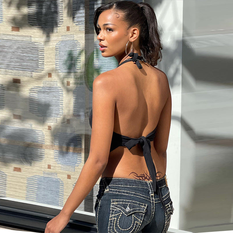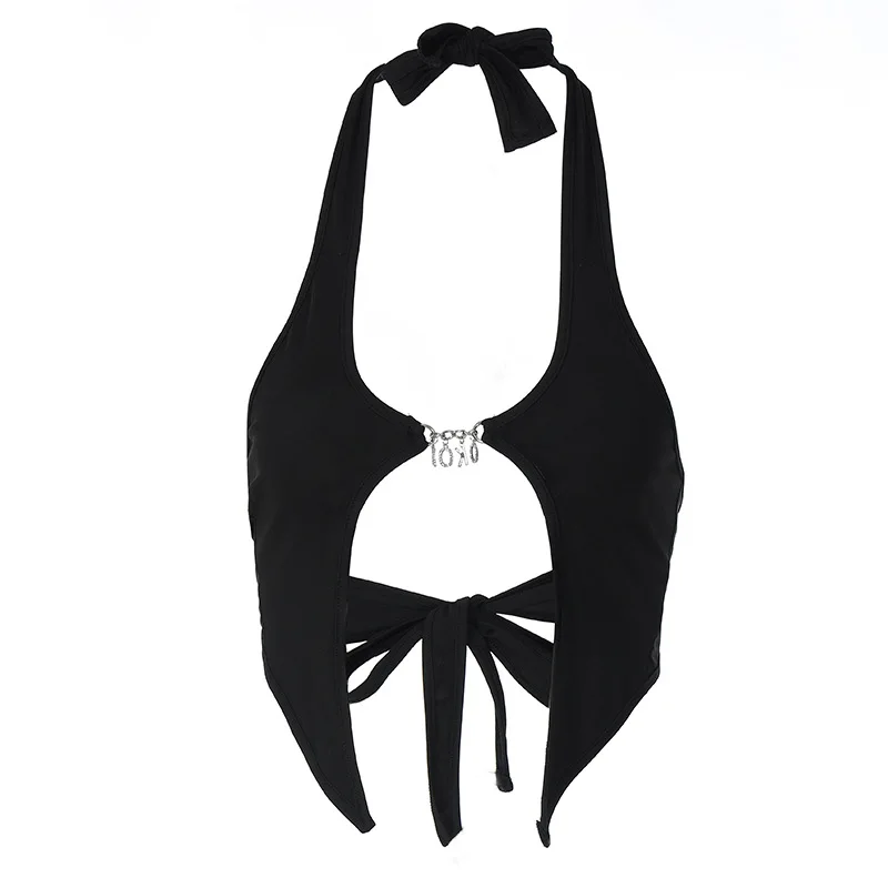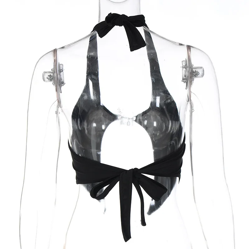 Fashion 2022 Summer Chic Black Halterneck Bandage Crop Top Women's Clothing Basic Rave Festival Sexy Cutout Tops Streetwear