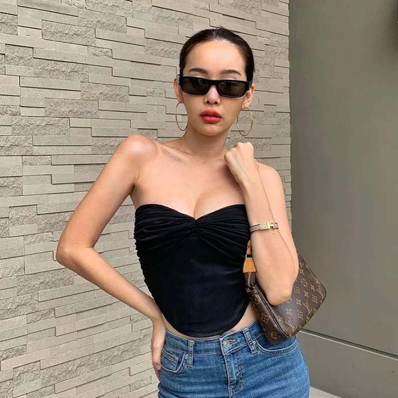 Fashion Elegant Lace Tube Top Crop Tops for Women Summer Sexy Backless Tanks Cropped Party Club Clothes Streetwear Shirt Tee