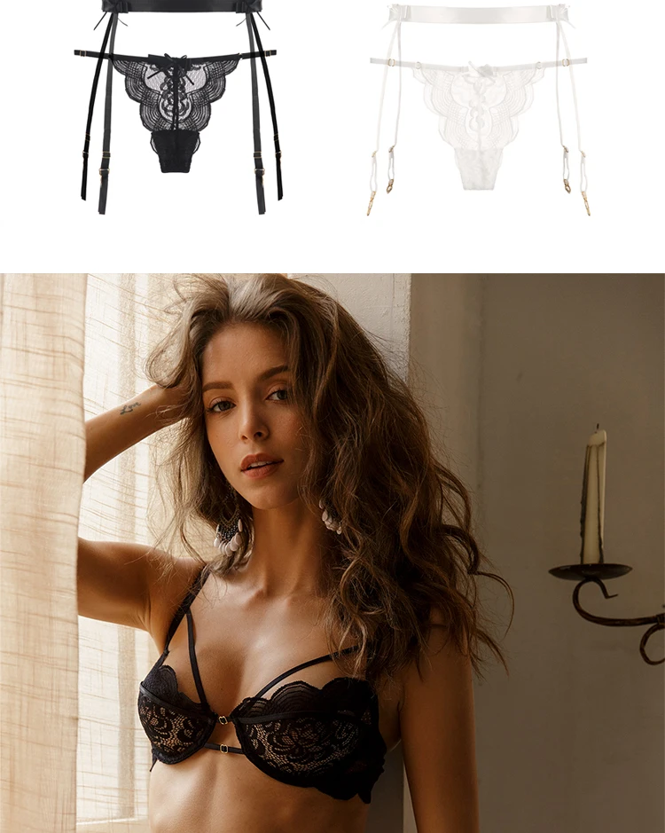 Femme Embroidery Push Up Bras G-String Panties Underwear Women Sexy Sensual Lingerie Woman Padded Underwear Set Garter