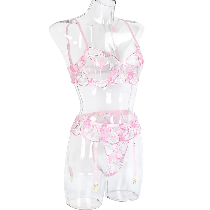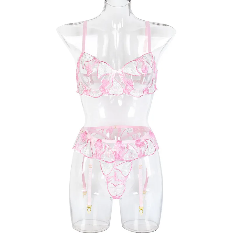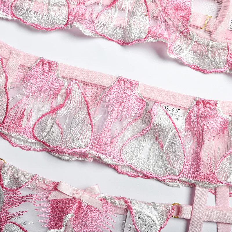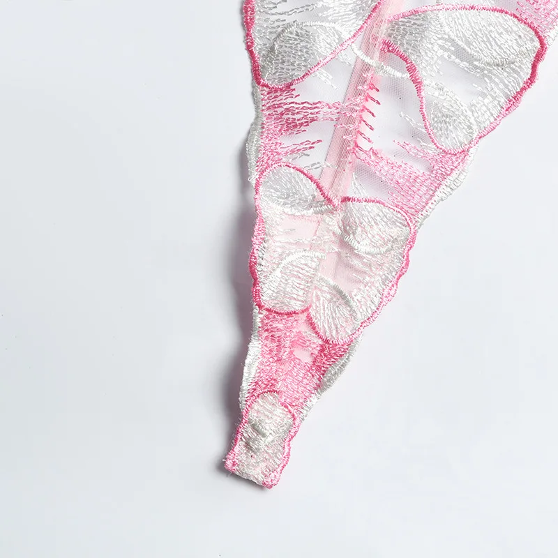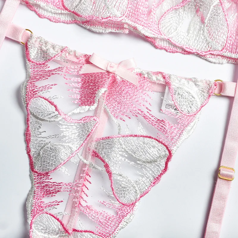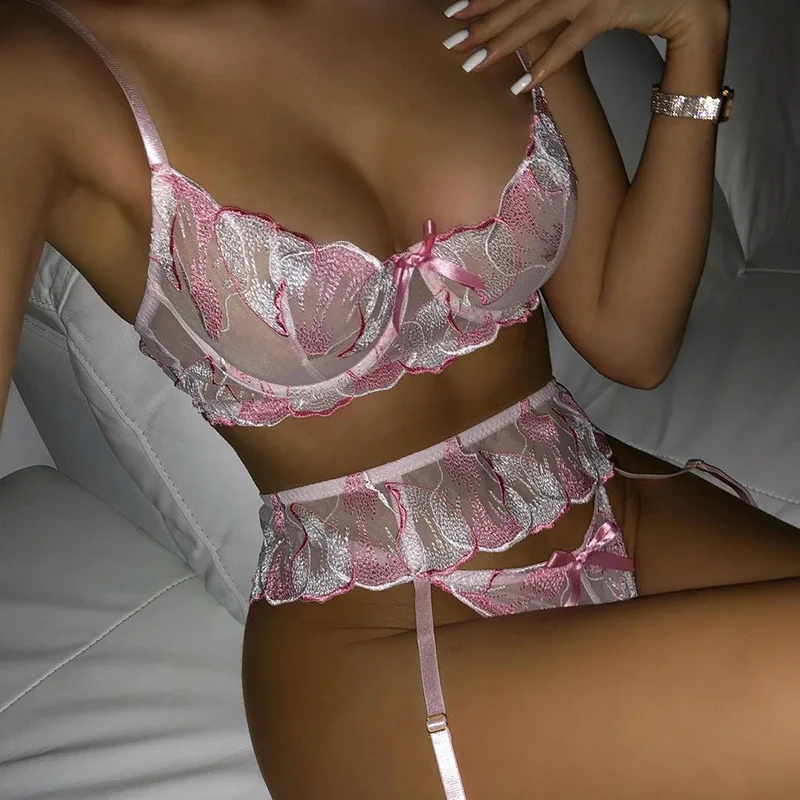 Floral Embroidery Sensual Lingerie Women's Underwear Fancy Transparent Bra and Brief Set with Graters Sexy Lace Erotic Intimate