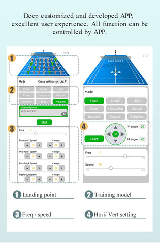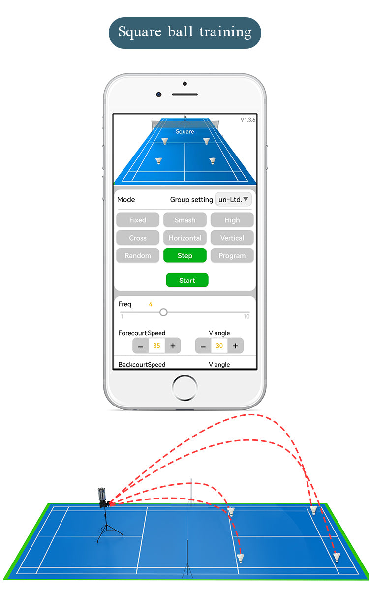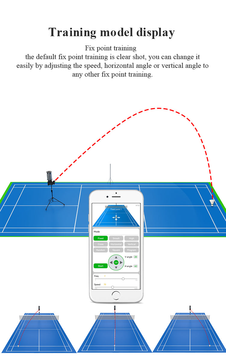【CUSTOM TRAINING PROGRAMMING】You can program your drills or custom your own. Our badminton practice machine features custom drills to 28 court locations, choose the location, ball speed, height, and feed rate for each shot and then save as your personalized drills.