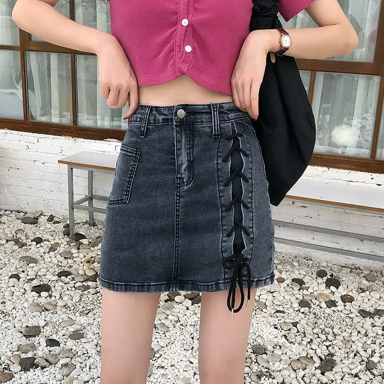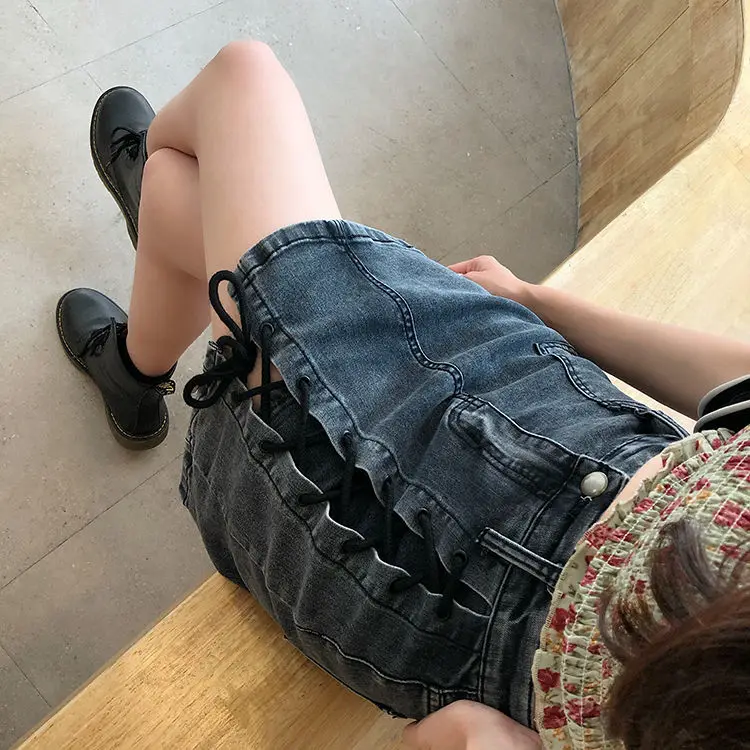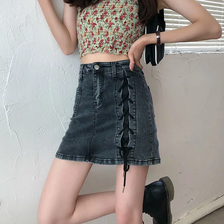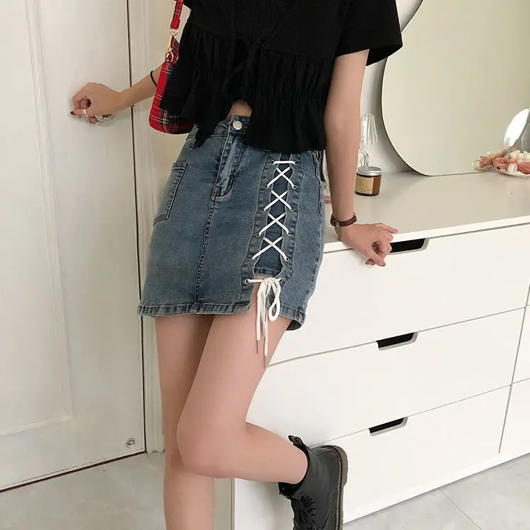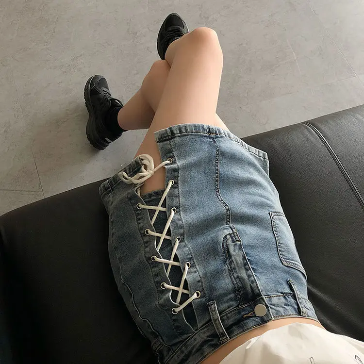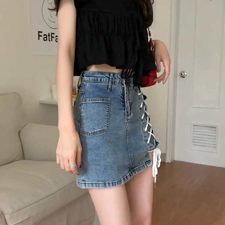 High Waist Elastic Irregular Denim Short Skirt for Women Simple Bandage Summer 2022 New Streetwear Faldas Mujer Korean Chic Jupe