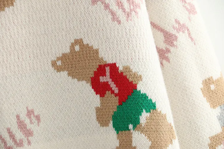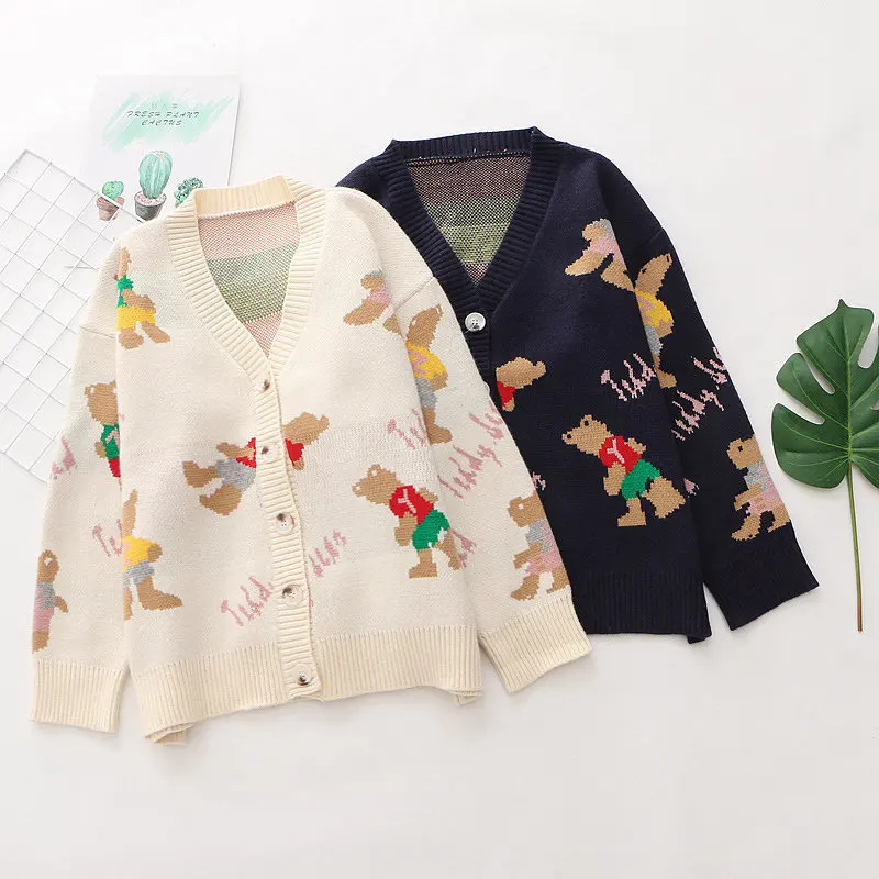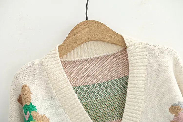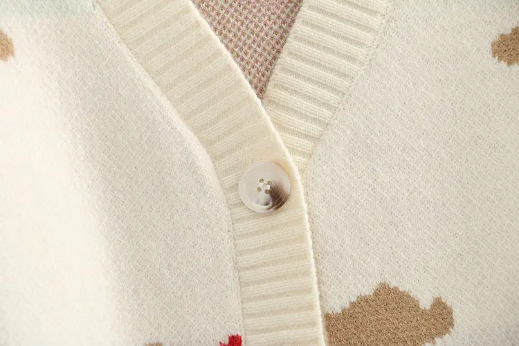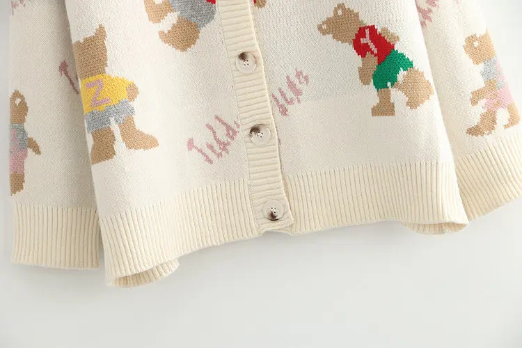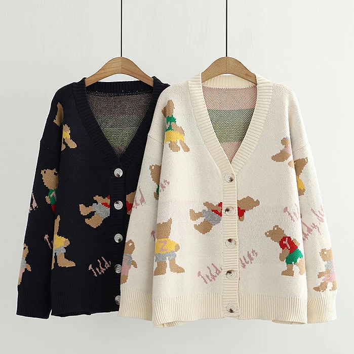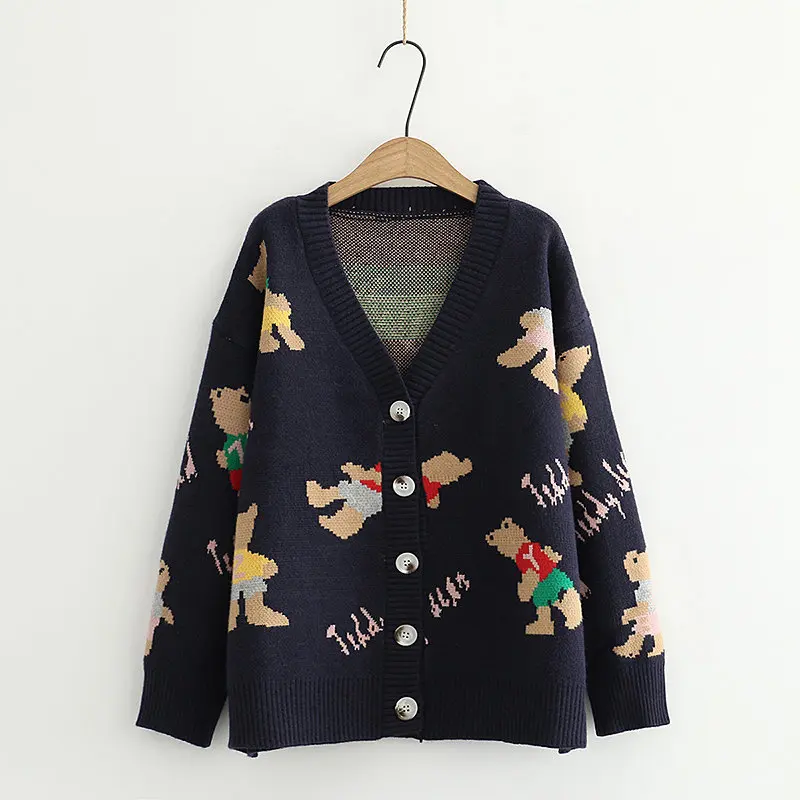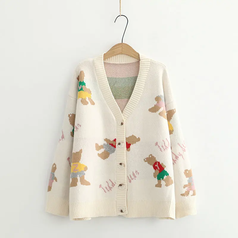 Japan Style Single Breasted Caytoon Kawaii Sweater Fall 2022 V-neck Cute Bear Knitted Cardigan Women Soft Loose Sueter Mujer