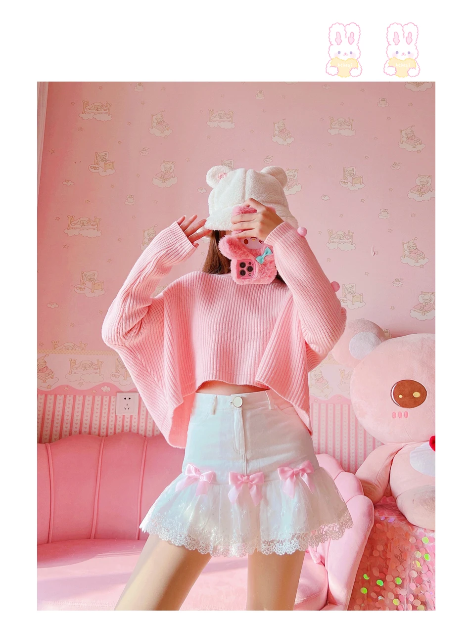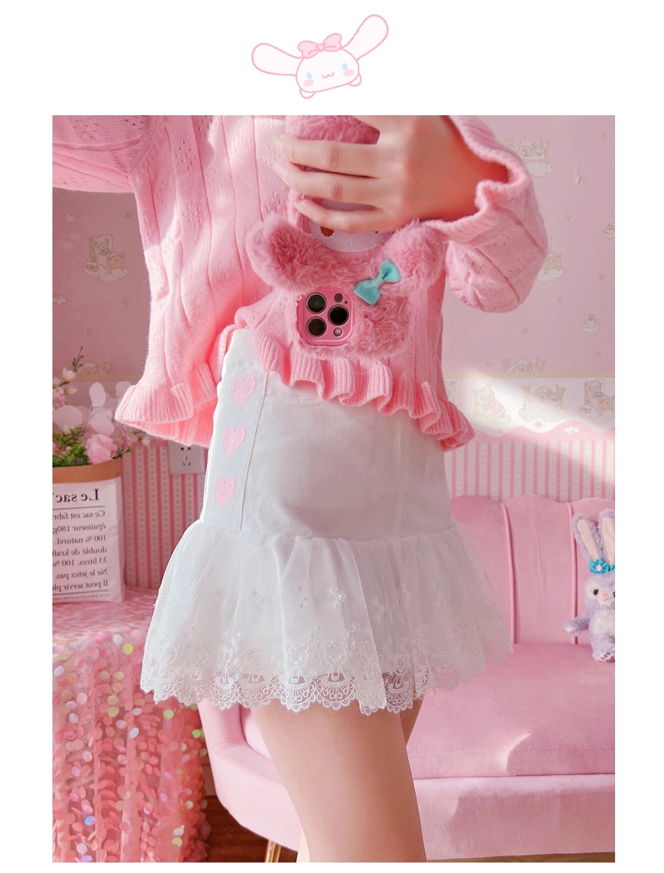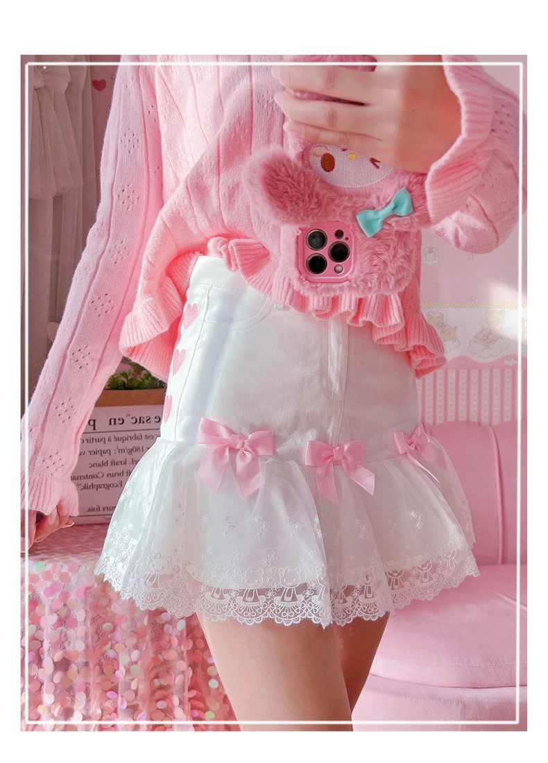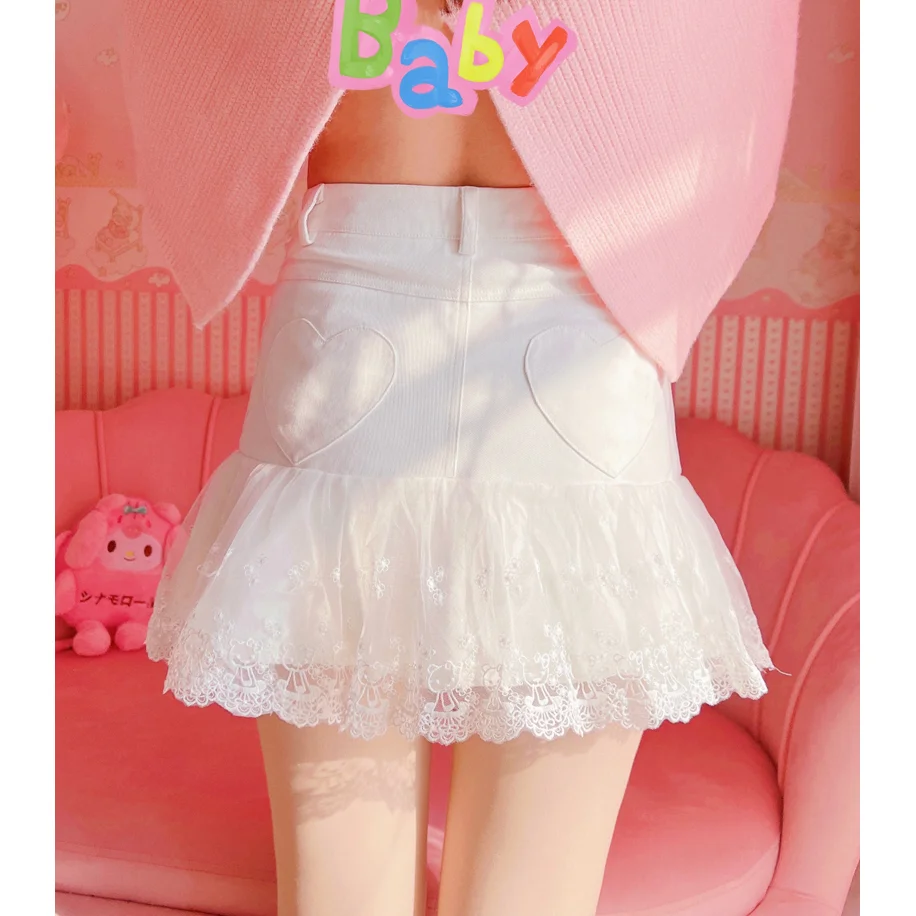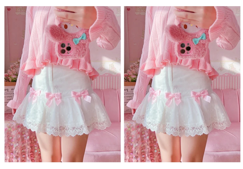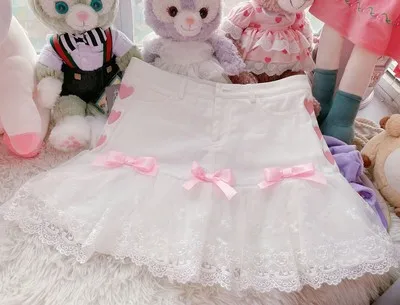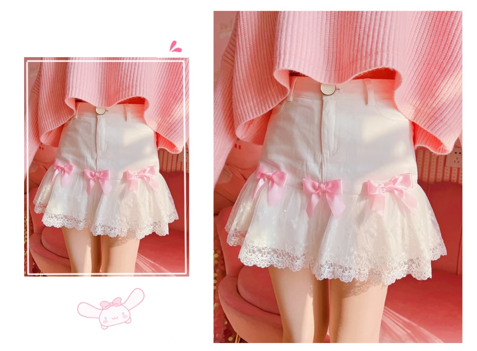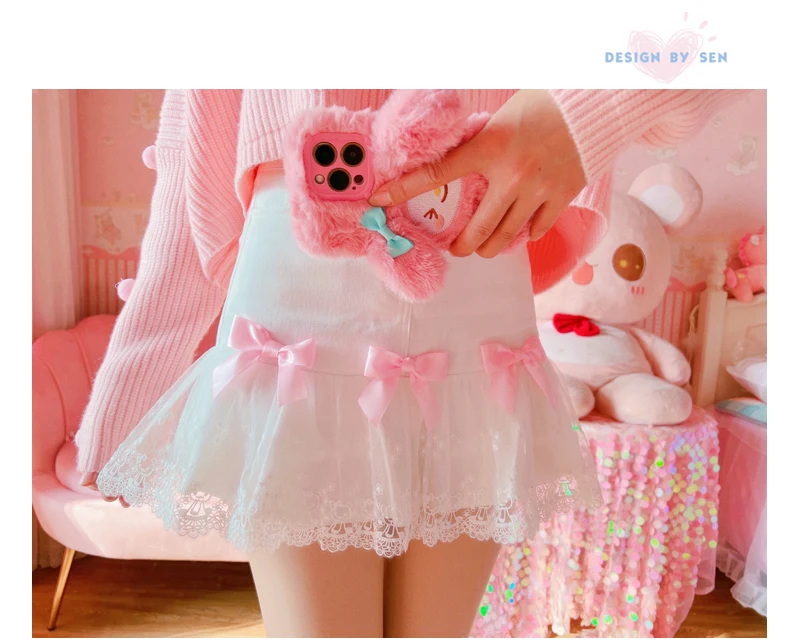 Japanese Sweet Cute Bow Skirts White Women 2022 Spring Voile Lace Skirt High Waist Mini Jupe Schoolgirl Lolita Kawaii Clothes