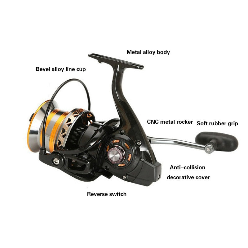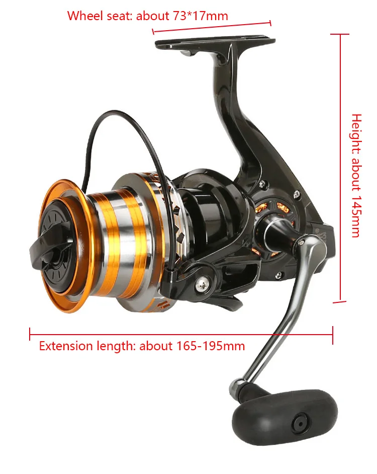 Large Far Throw Fishing Reel DH 9000-12000 Series Metal Bevel Cup Freshwater Reservoir Lure Distant Wheel