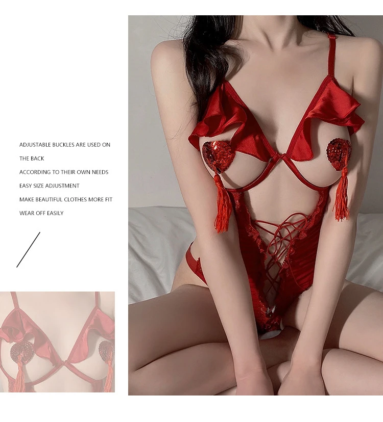 Lingerie Set Sexy Costumes Lingerie Bodysuit Lace Up Bandage Sexy Bodysuit Ladies Sex Crotch Open Through Body Stripper Clothes