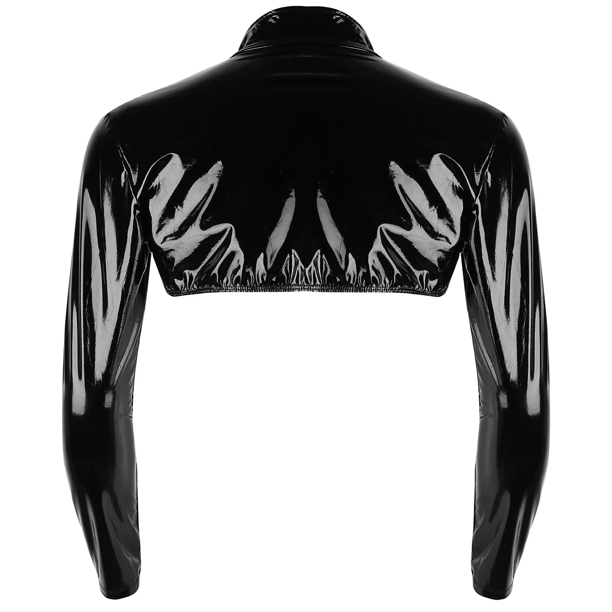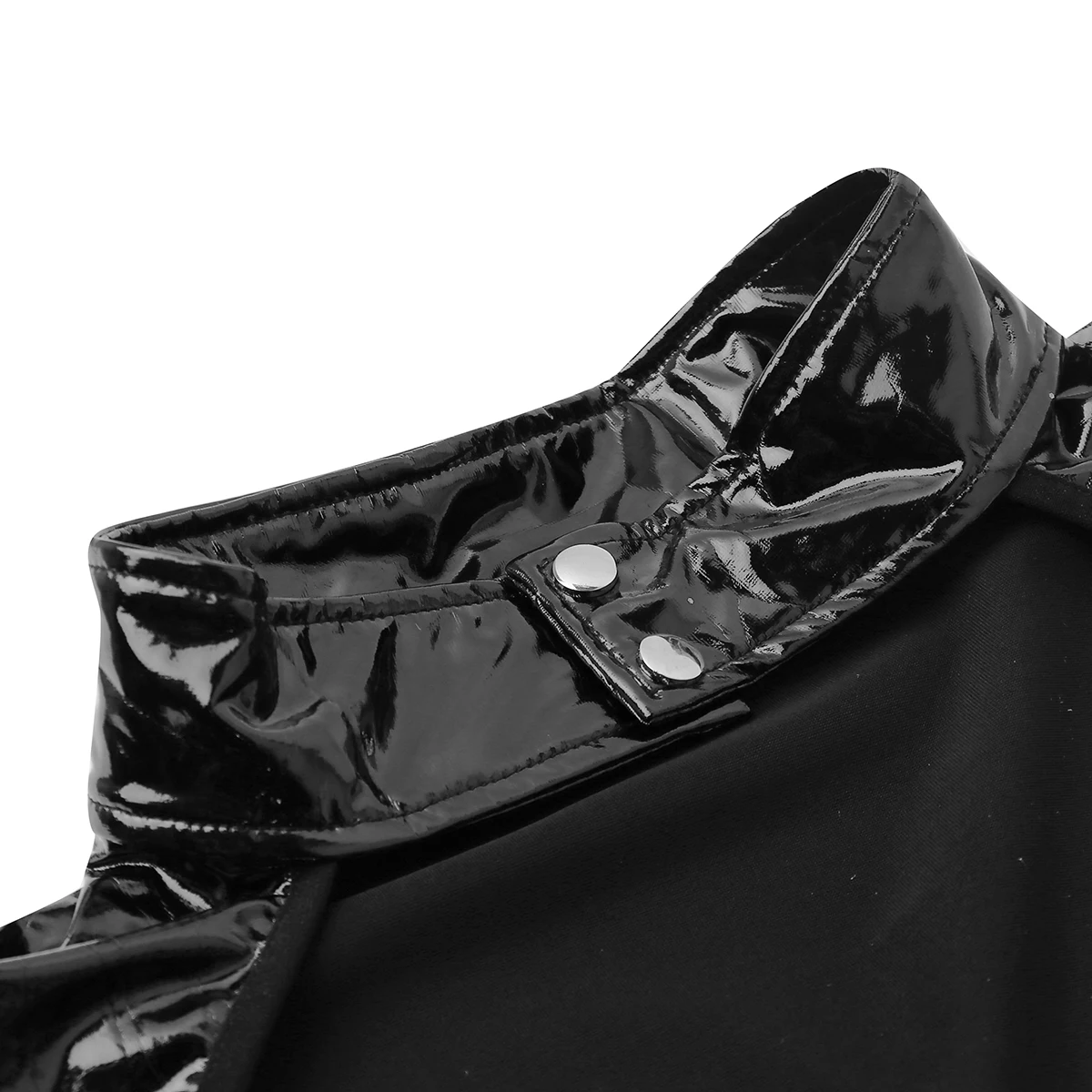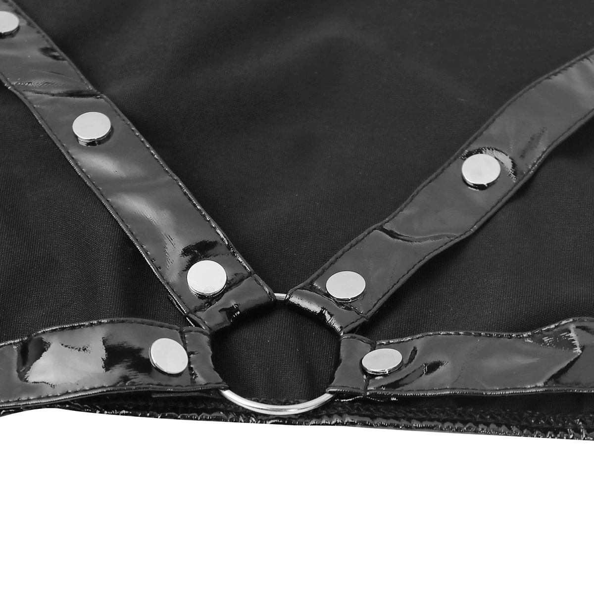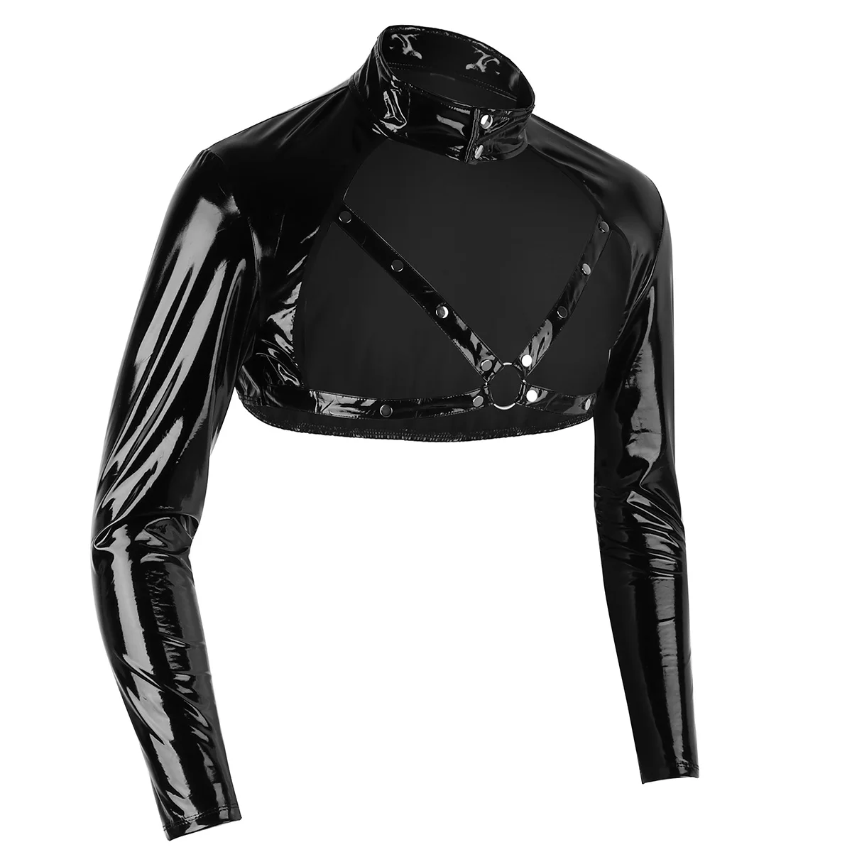 Men’s wet look faux leather half tank crop tops, good stretchy fabric.