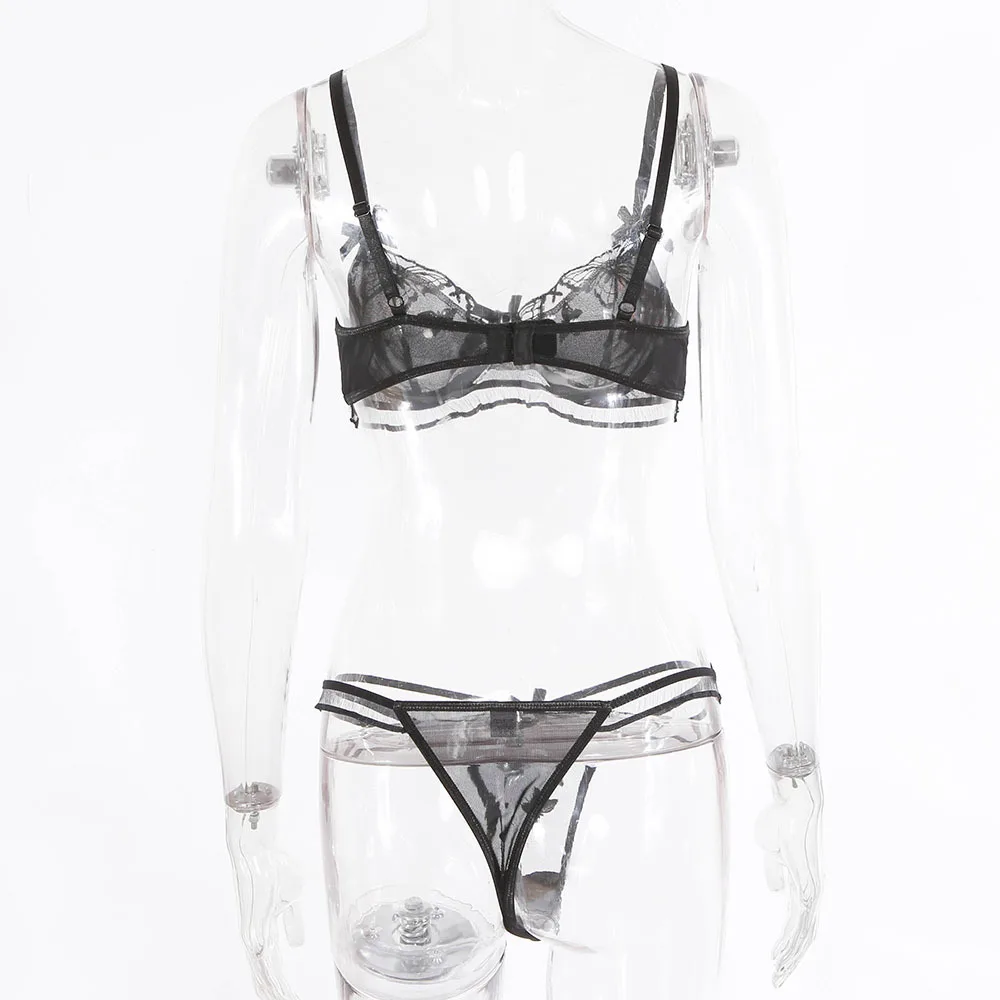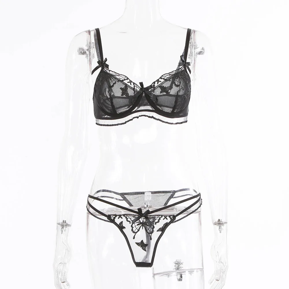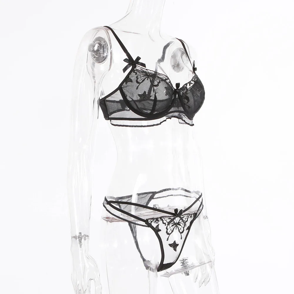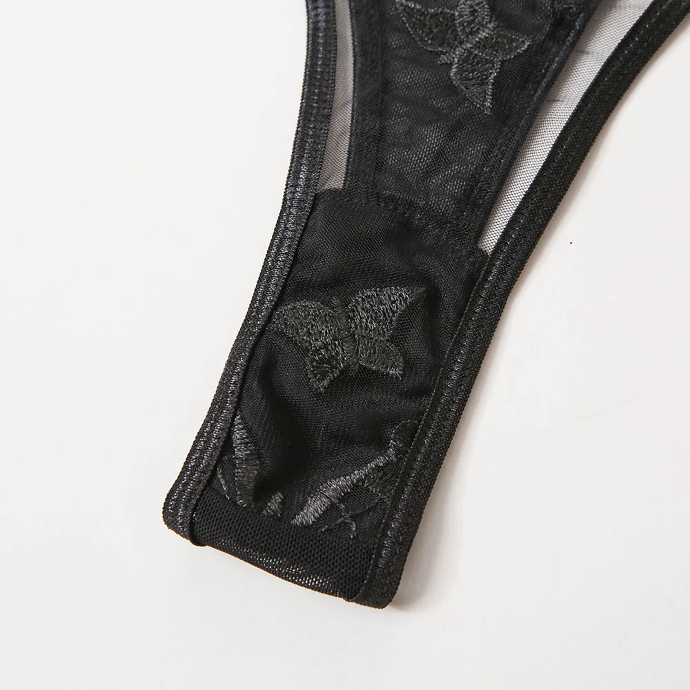 New Women Embroidery Sexy Sensual Lingerie Underwear Butterfly Erotic Costumes See-Through Bra and Thong Exotic Underwire Bra