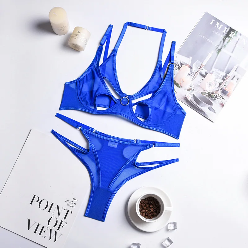 New Women Sexy Halter Sensual Lingerie Underwear Lace Erotic Costumes Hollow Out Underwire Bra Perspective Erotic Underwear