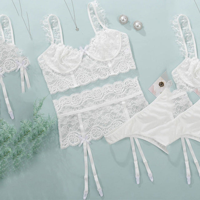 New women sexy lingerie suit Perspective lace uniform suspenders sexy lingerie bra panties bodysuit lengerie femenina 3 colors