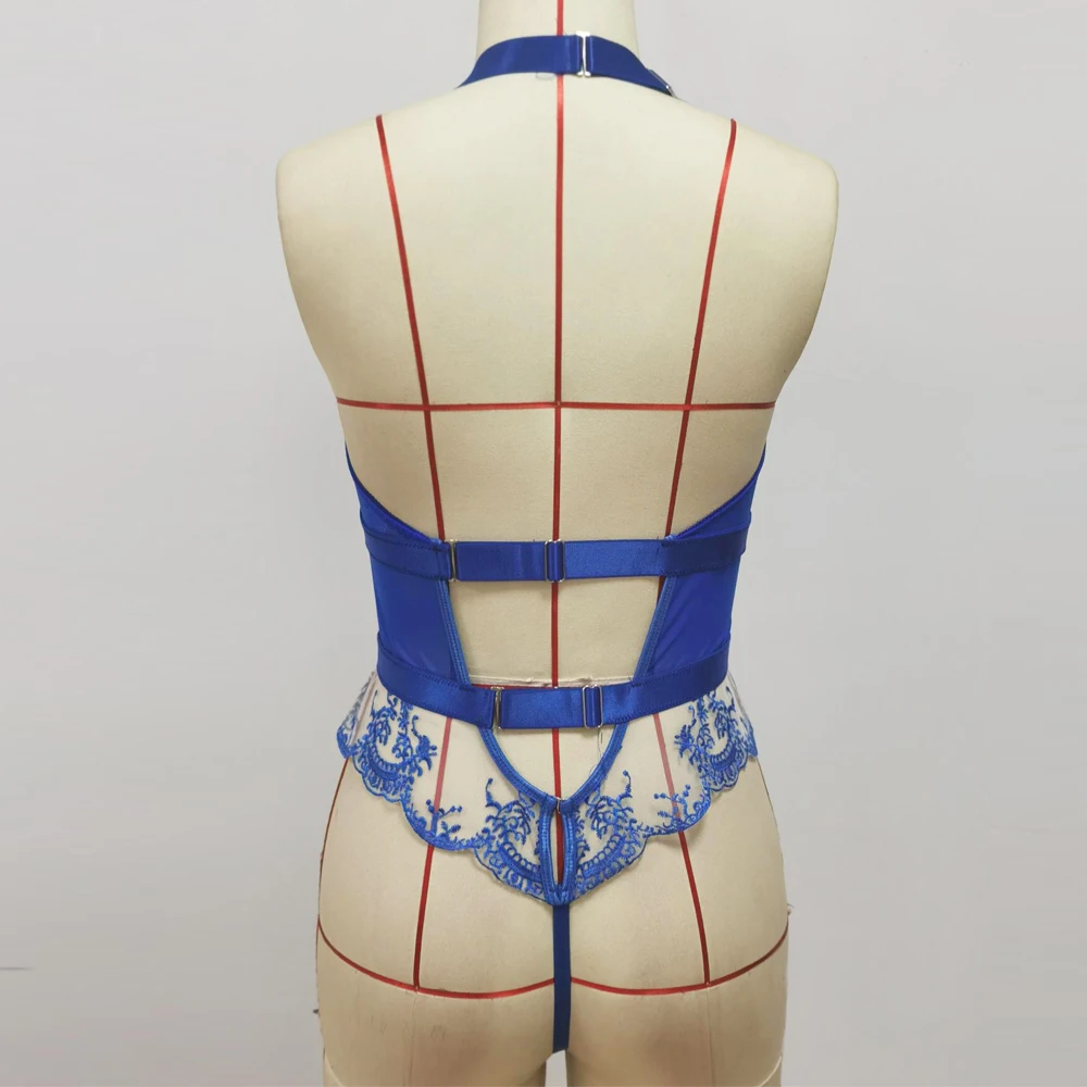 Sensual Lingerie Floral Embroidery Bodysuit Sexy Lingerie Bandage Lace Body Underwire Bra Summer Woman Mesh Erotic Costumes