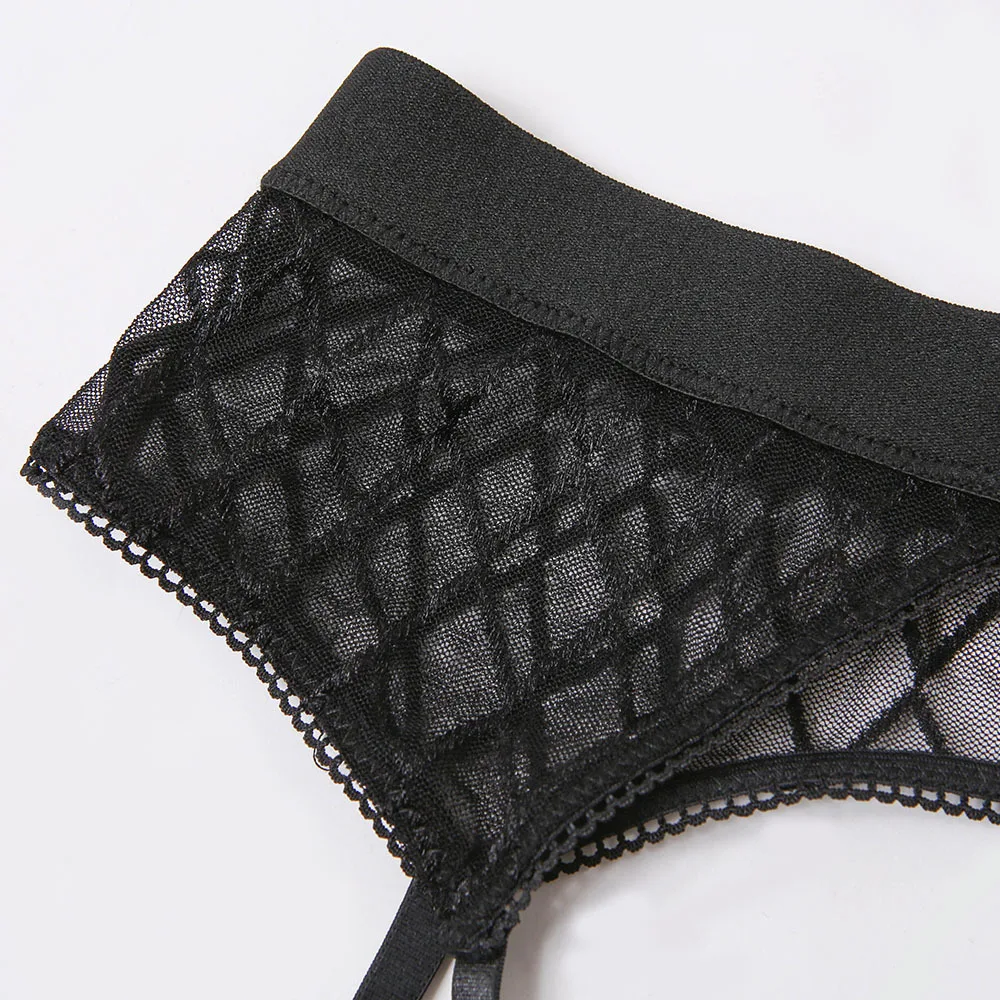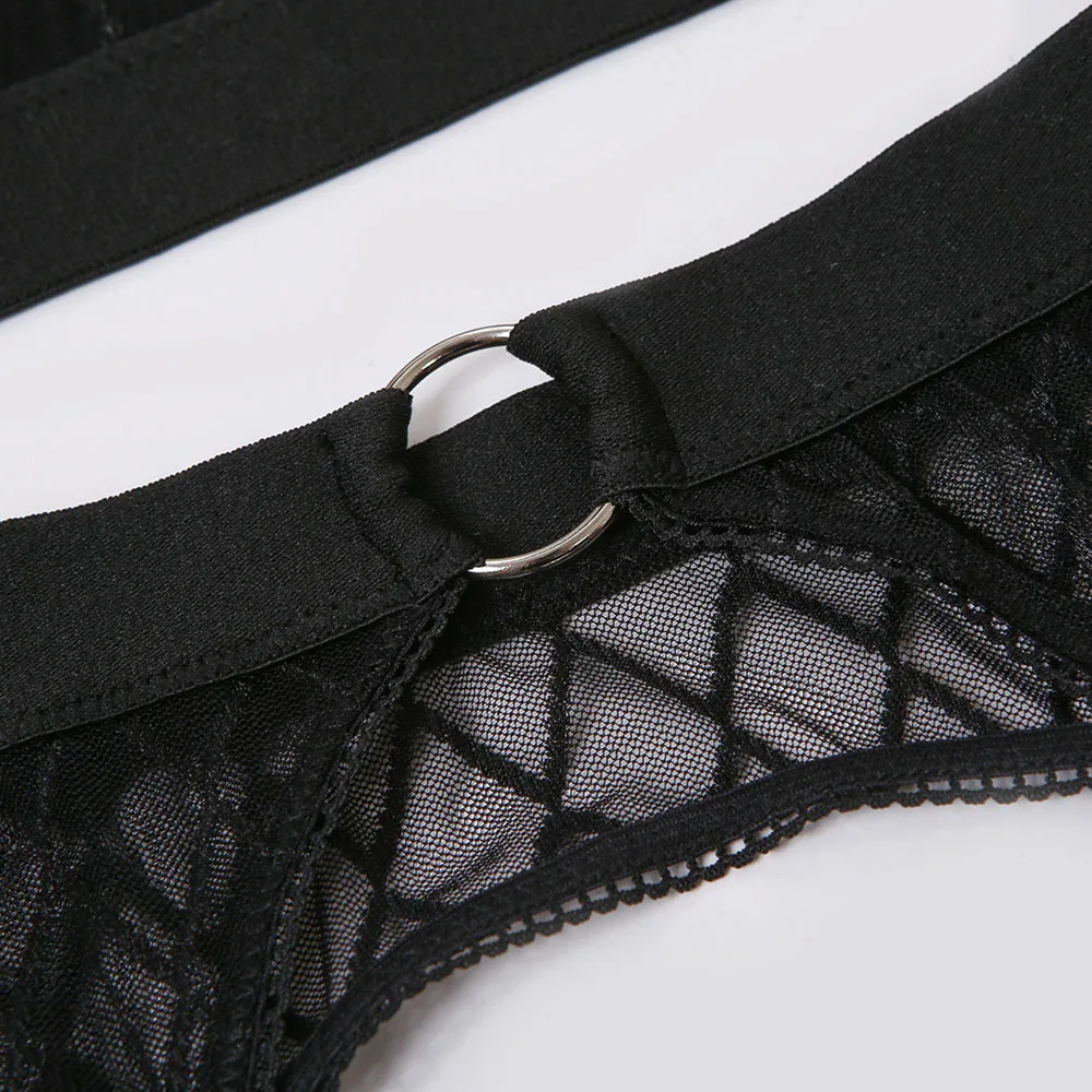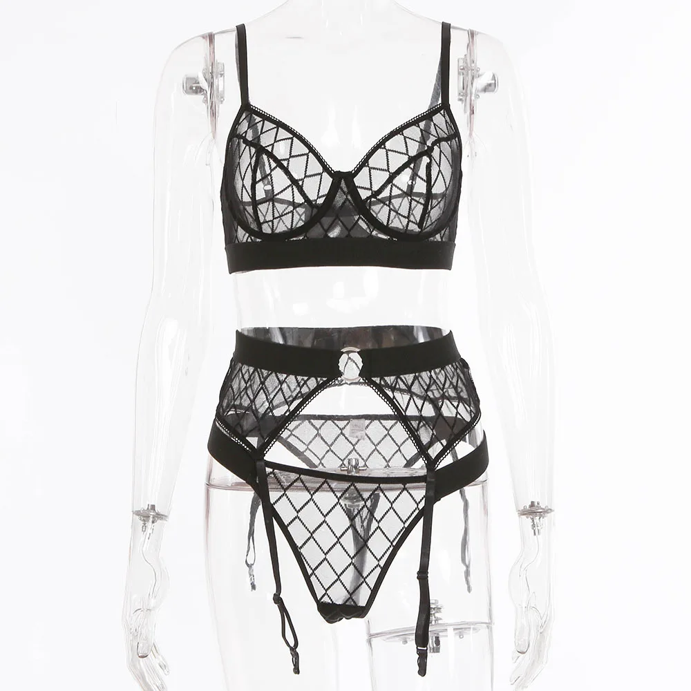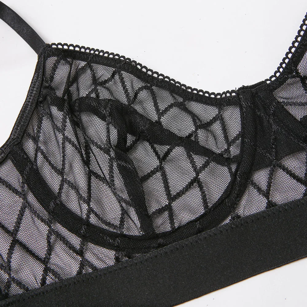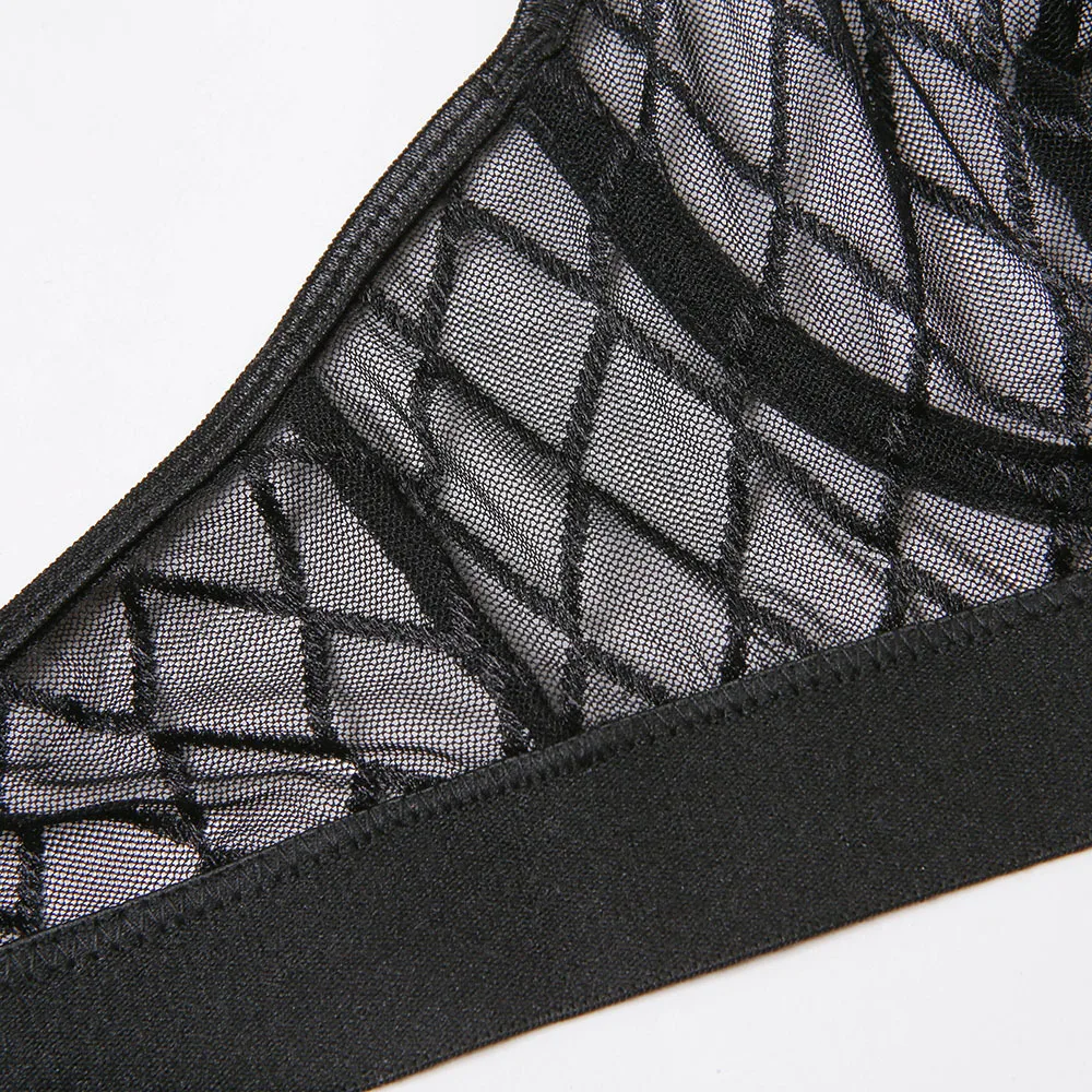 Sexy Erotic Lingerie Women's Underwear Mesh Bra and Brief Set Geometric Embroidery Lace Graters Transparent Sensual Lingerie Set
