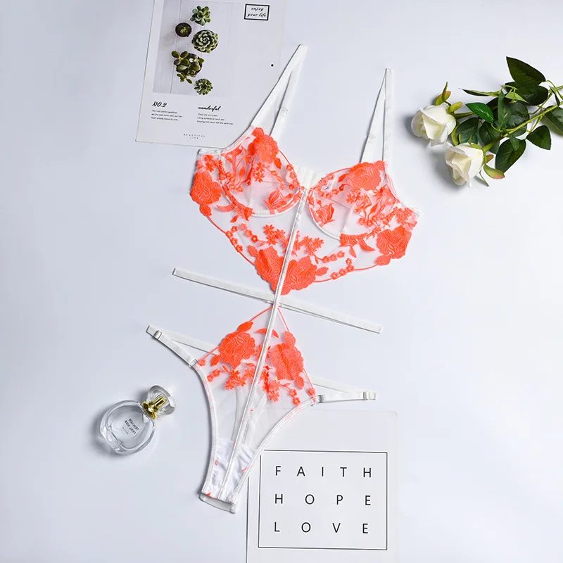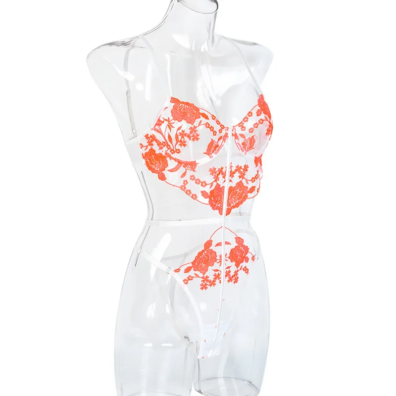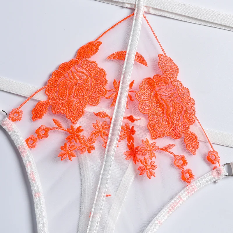 Sexy Lingerie Bodysuit Underwear Erotic Embroidery Patchwork Mesh Bra Set Exotic Sensual Lingerie for Women Underwear Jumpsuit