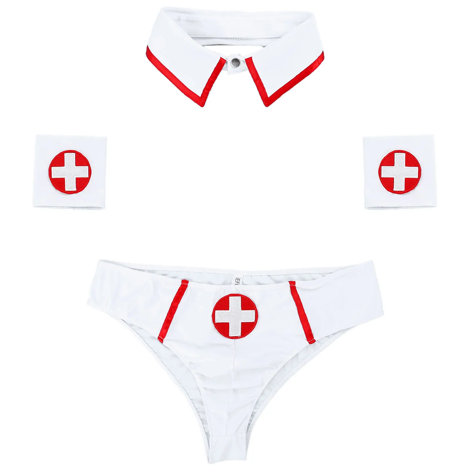Cuffs and briefs, decorated with red cross, for doctor and nurse role play, perfectly shows the charm of men and adds fun.