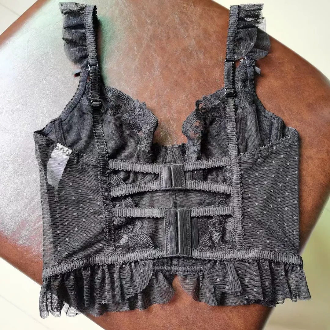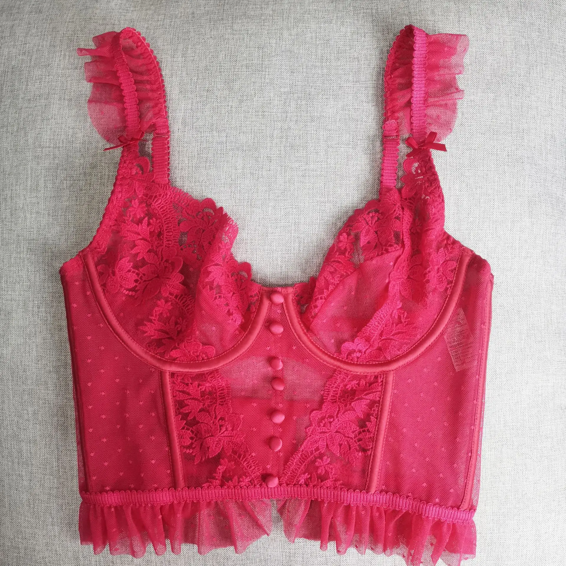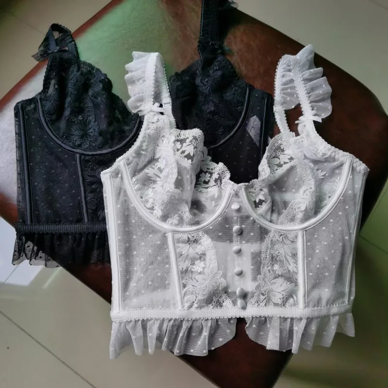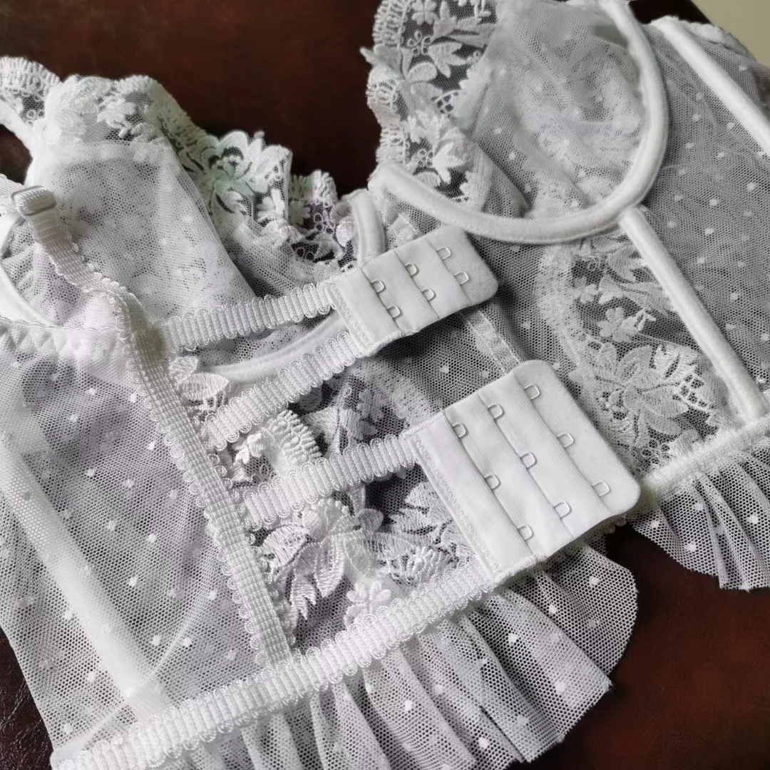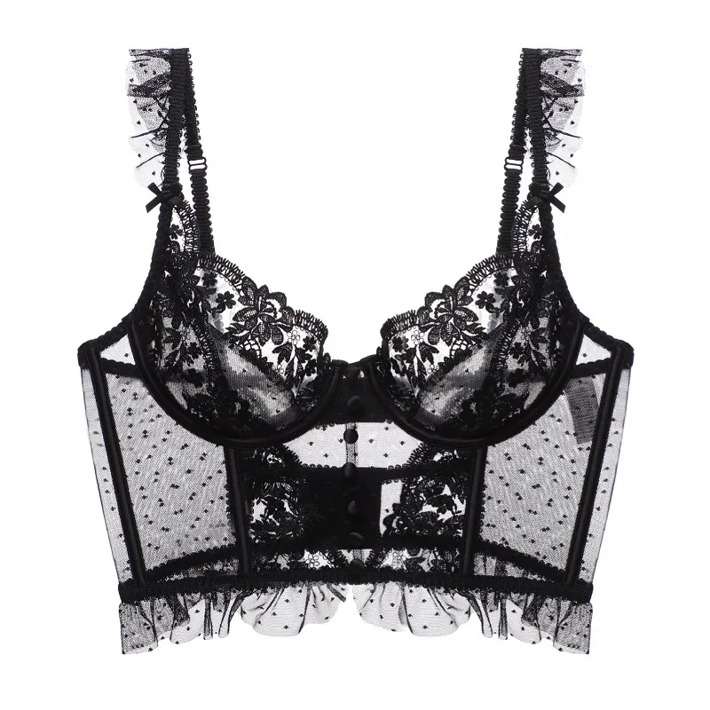 Sexy Ruffled Exotic Costumes Floral Embroider Sensual Lingerie Underwear Transparent Erotic Bra Top Corset Intimate Bondage