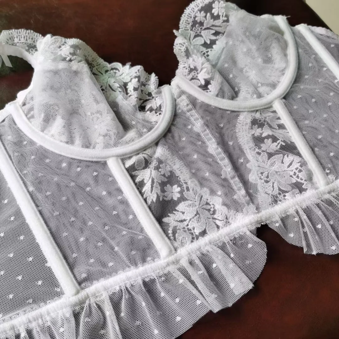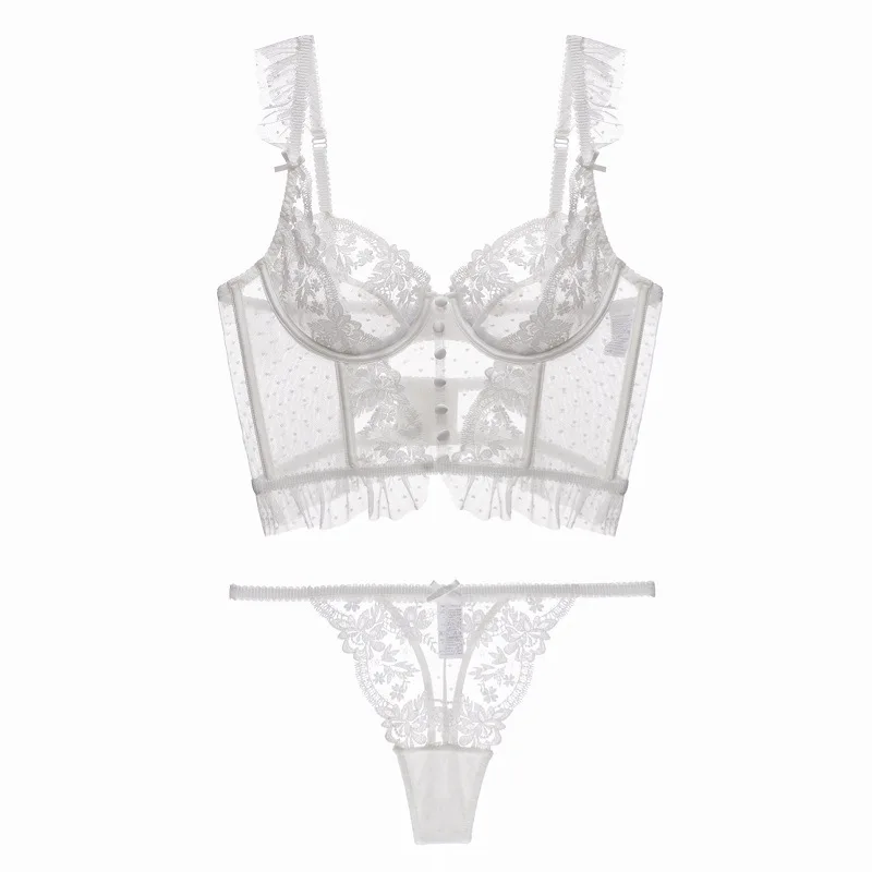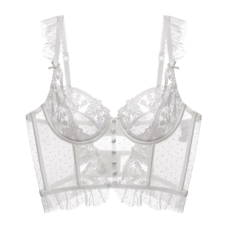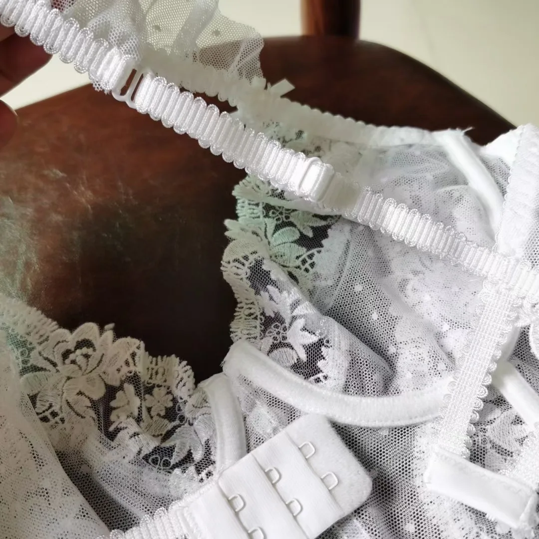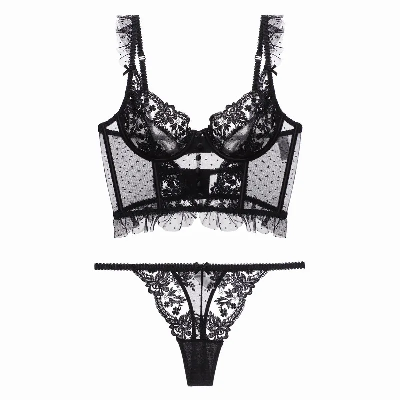 Sexy Ruffled Exotic Costumes Floral Embroider Sensual Lingerie Underwear Transparent Erotic Bra Top Corset Intimate Bondage