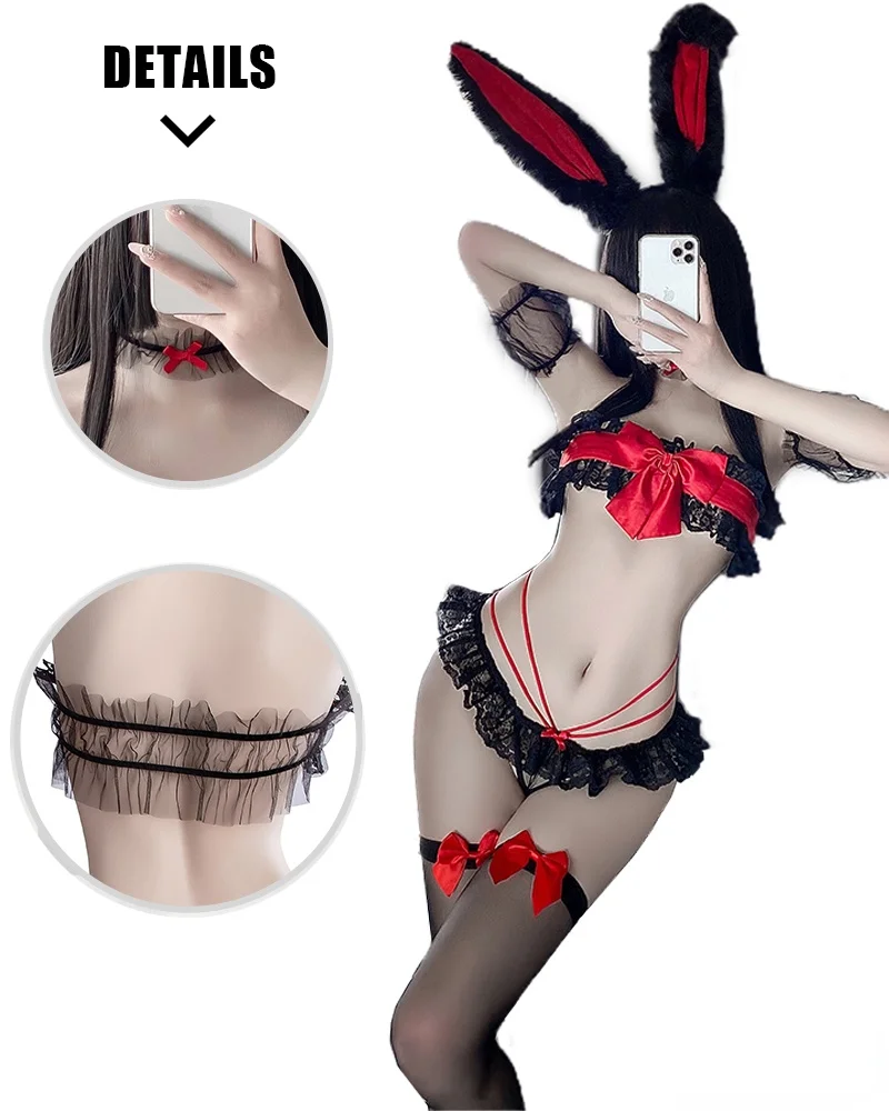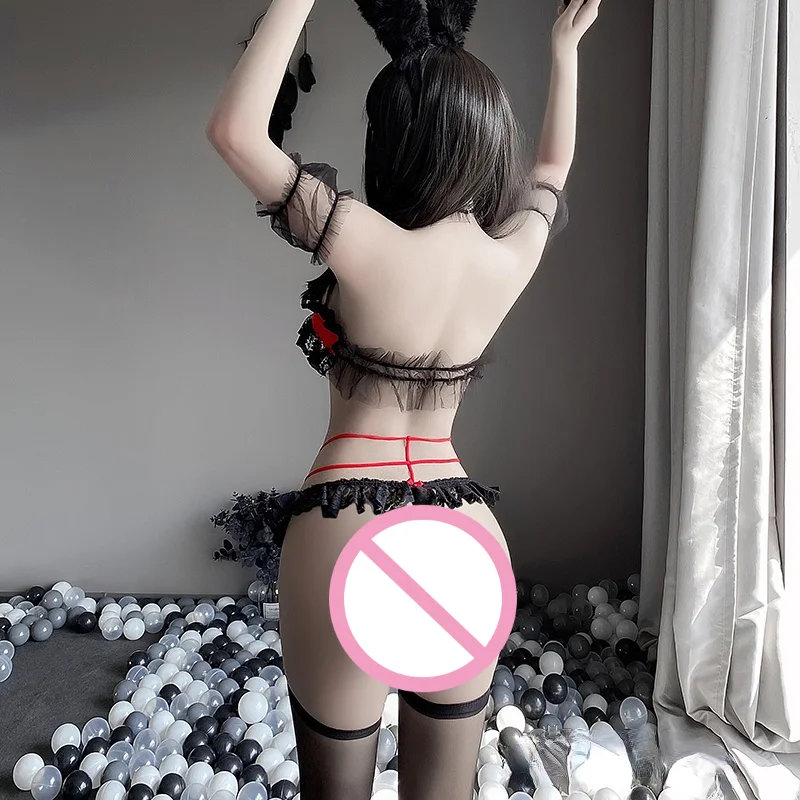 Sexy See-through Tube Top Big Bow Lace Three-point Uniform Temptation Suit Halloween Costume Women Cow Cosplay